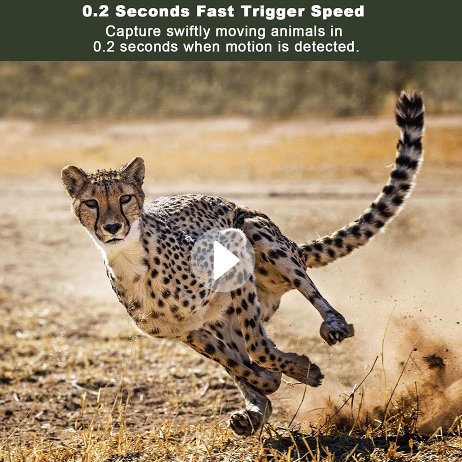 4. Solar Powered: The camera has a built in 5W solar charging panel, which can fully utilize the sun's energy into power saved in the built in lithium ion battery, which greatly extends the camera's working time, environmentally friendly.