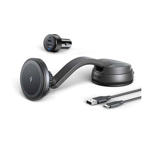 Anker 613 Magnetic Wireless Charger (MagGo), Car Charging Mount with 2-Port USB Car Charger, 5 ft USB-C to USB-A Cable, Strong Magnetic Alignment only For iPhone 13, 12 / 12 Pro / 12 Pro Max / 12 Mini.