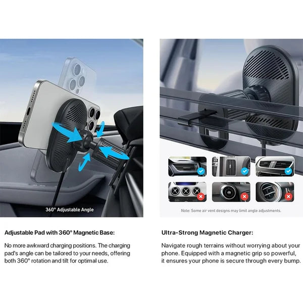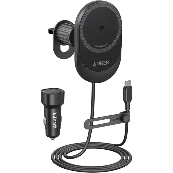 The Anker MagGo Wireless Car Mount Charger with 25W Adapter is a convenient and efficient way to charge your compatible smartphone while on the go. Its strong magnetic grip securely holds your device in place, even during bumpy rides. Here are some key features and benefits.