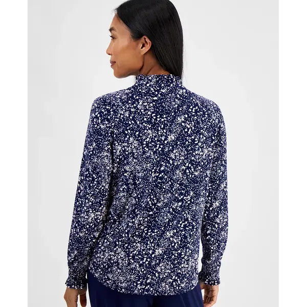 A charming print is complimented by sweet smocked sleeves for a return to romance style, this flawless blouse by AK Anne Klein is designed for the petite frame.