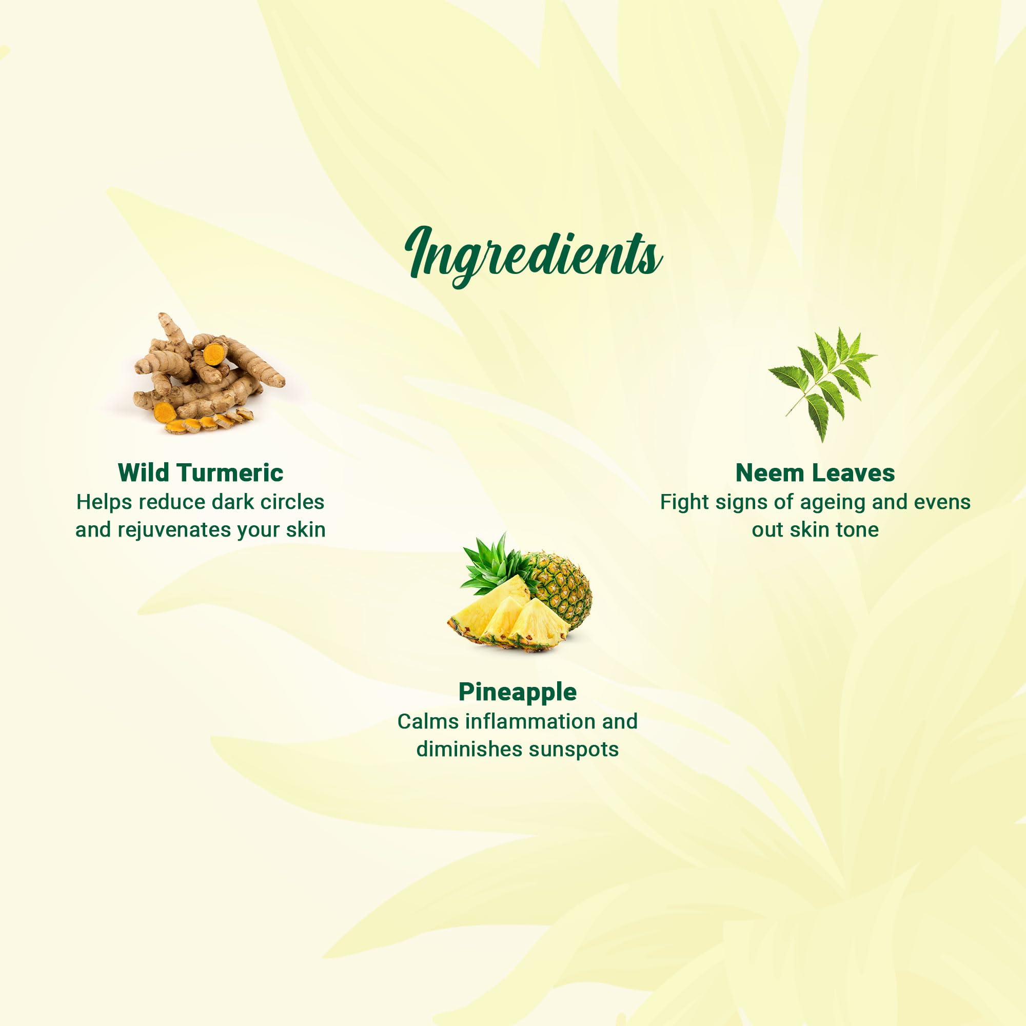 PINEAPPLE is the queen of tropic fruit, This fresh foaming 100% soap-free cleansing gel removes excess oil, softens skin for a fresh complexion. Contains Pineapple, Wild Turmeric & Neem Leaves.