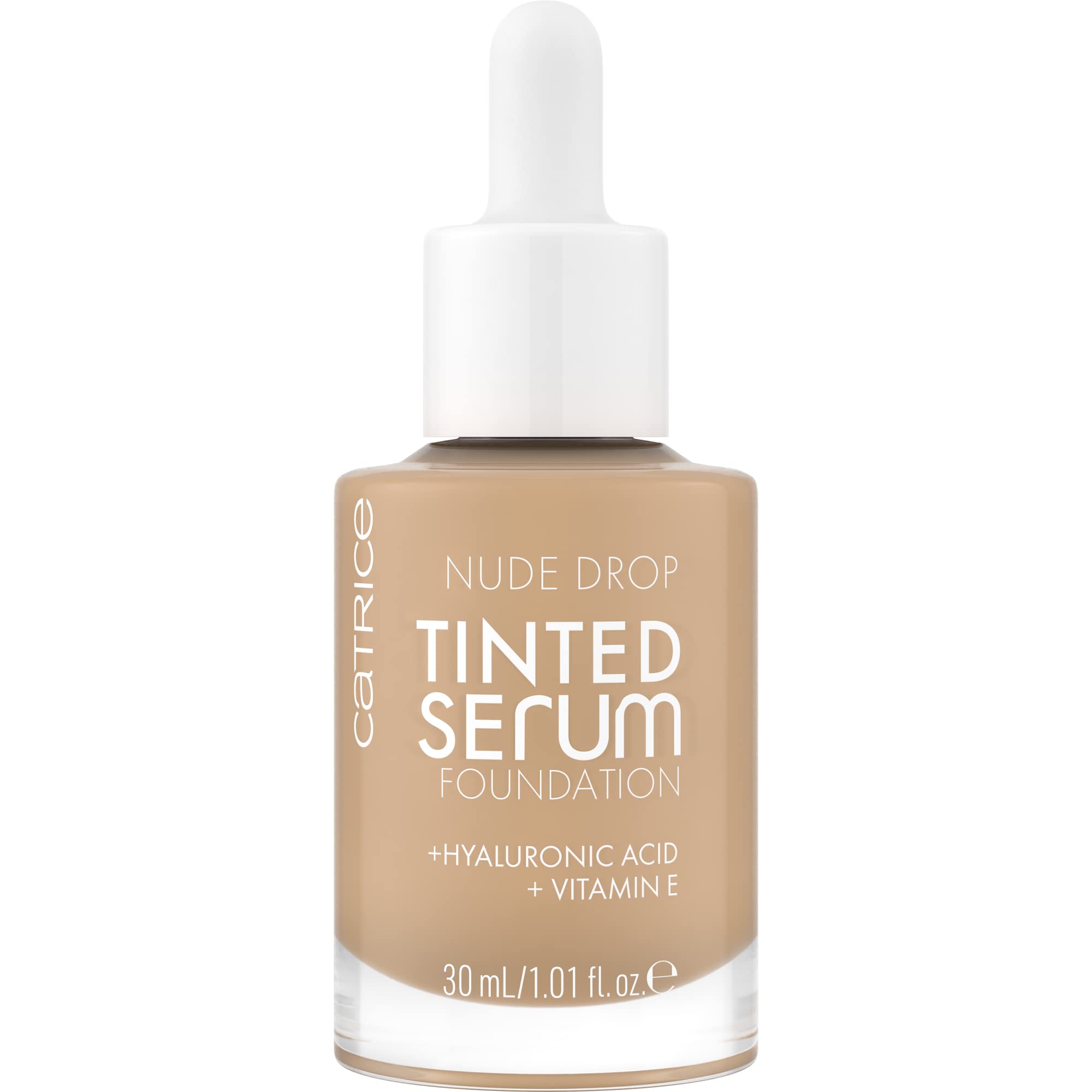 Feather-light texture like a serum, performance like a make-up: the Nude Drop Tinted Serum Foundation impresses with its very fluid, weightless and breathable formulation. It contains hyaluronic acid and vitamin E and provides a 24-hour moisturising care effect. Thanks to specially coated pigments, the foundation also lasts a particularly long time and gives a radiant complexion with a natural matte finish with its buildable, light to medium coverage. The formula is fragrance-free and suitable for sensitive skin. For the perfect result, shake the combination of serum and foundation well before application.