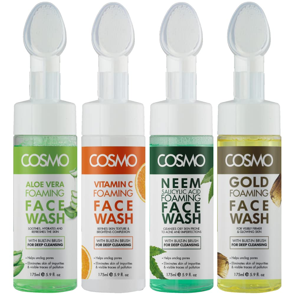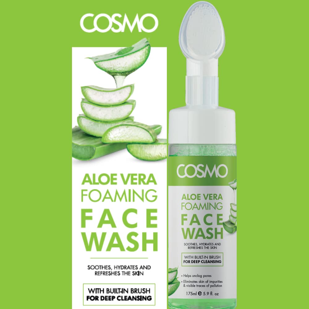 Cosmo Skin Care Aloe Vera Foaming Face Wash For Soothes, Hydrates, and Refreshes the Skin Built-in Brush 175ml, For Men & Women, Deep Clean, Facewash, All Skin Types