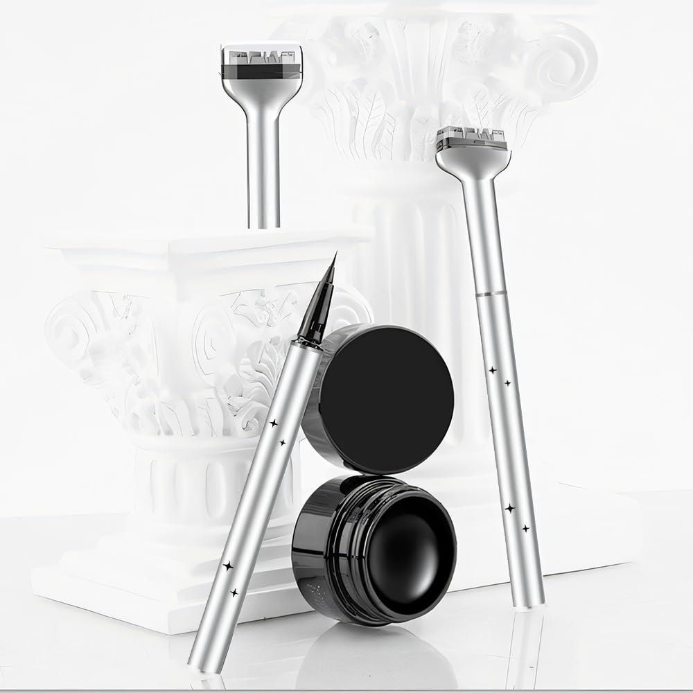 Cxqbsmy 2-in-1 Eyeliner Lower Eyelash Stamp Kit, Sweat-Proof, Non-Smudgeable, Reusable Quick Eye Makeup Tool with Ink, Liquid Eyeliner Stamp Waterproof One-Shot Molding for Makeup Beginners (Black)