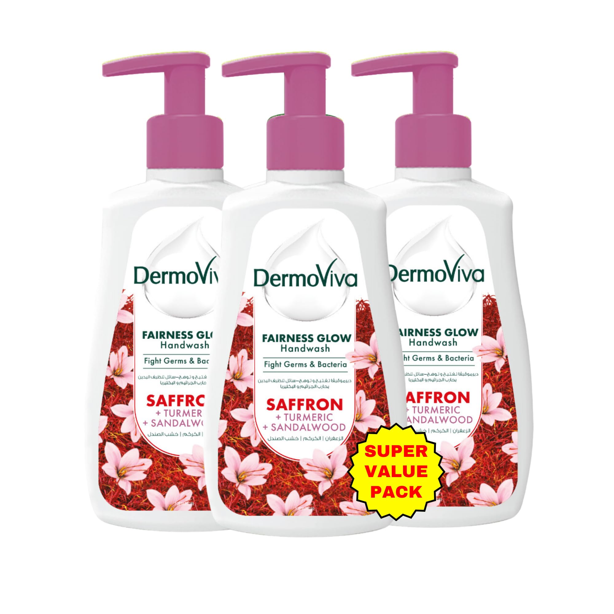 Say goodbye to dull, uneven skin with DermoViva Fairness Glow Hand Wash. Our unique formula is enriched with natural skin-lightening ingredients like Saffron, Turmeric, and Sandalwood, that gently cleanse your skin while giving you a fairer, even tone. Saffron, with its 5000 years of history, is a powerful ingredient that has been used for centuries for its invaluable benefits. Our unique blend of Saffron, Turmeric, and Sandalwood gives a natural glow and reduces uneven skin tone, leaving you with fairer and more moisturized skin. Unlike other chemical-laden hand washes, DermoViva Fairness Glow Hand Wash is 100% chemical-free, making it safe and gentle for daily use. Say hello to soft, supple, and glowing skin with every wash. Experience the magic of nature with DermoViva Fairness Glow Hand Wash. Try it now and discover the secret to fairer, more radiant skin!