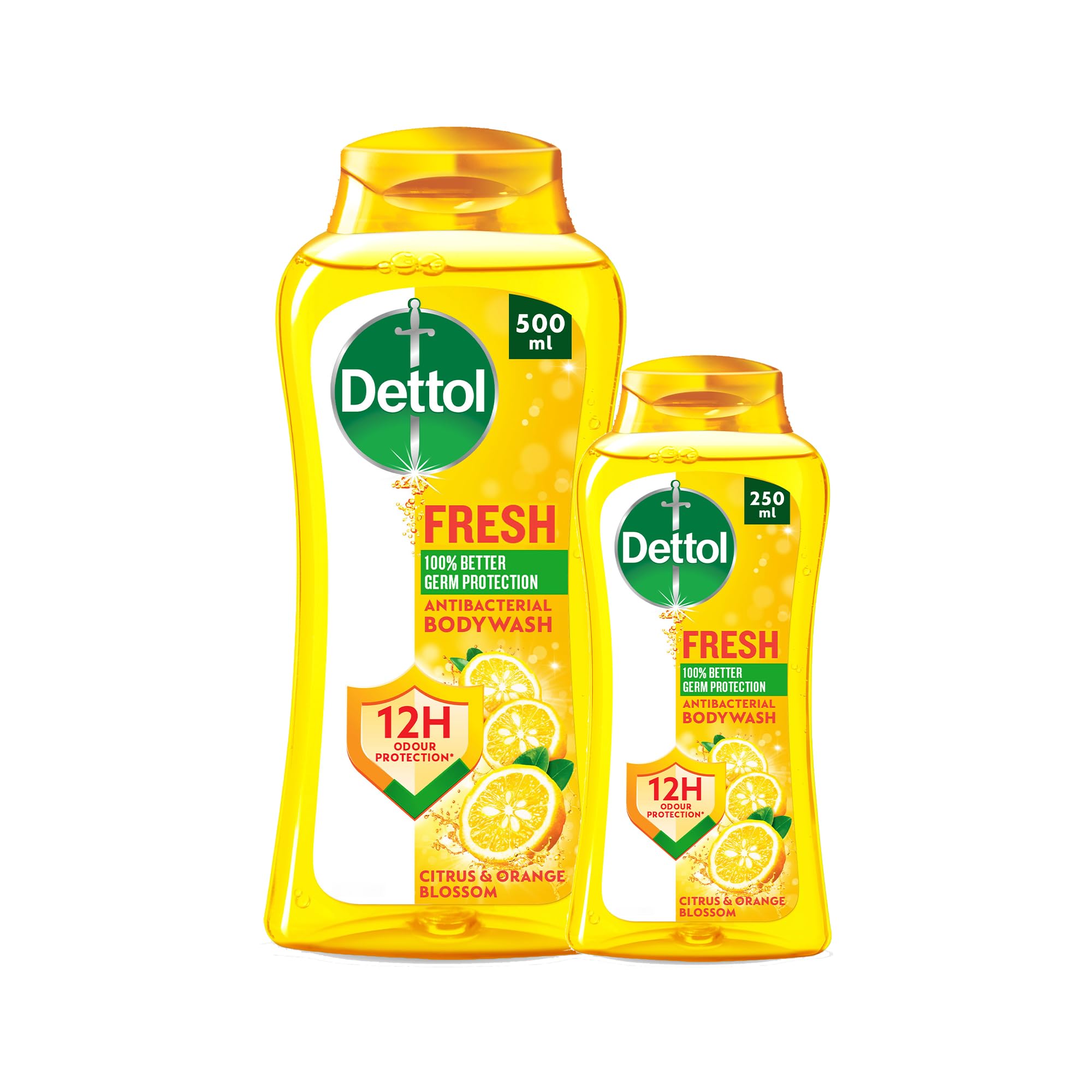 Leave your worries behind with a refreshing bath aided by the best shower gel. Dettol Fresh bodywash makes sure you always stay healthy by giving you 100% better germ protection versus non-antibacterial products, as tested against bacteria. The body wash combines Dettolβs trusted germ protection with refreshing citrus fragrance to protect your skin and help you relax. This Dettol shower gel maintains the pH of your skin leaving the skin feeling healthy and soft. The antibacterial shower gel provides you with 12 hours of odour protection and is free of TCC & Triclosan to keep your family healthy & hygienic. This product is dermatologically tested. Also explore Dettolβs products range like β Liquid Handwash refill, Liquid Handwash soaps, Antibacterial & Skincare Bar soaps, Multipurpose Home cleaners, Floor cleaners, Disinfectant spray Sanitizer, Hand sanitizer, Shower gel, Body wash, Bathroom cleaners, kitchen cleaners, Cleaning triggers, Surface & personal disinfectant wipes and Air fresheners. Get rid of that body odour instantly and keep your loved ones close when you choose Dettol shower gel.