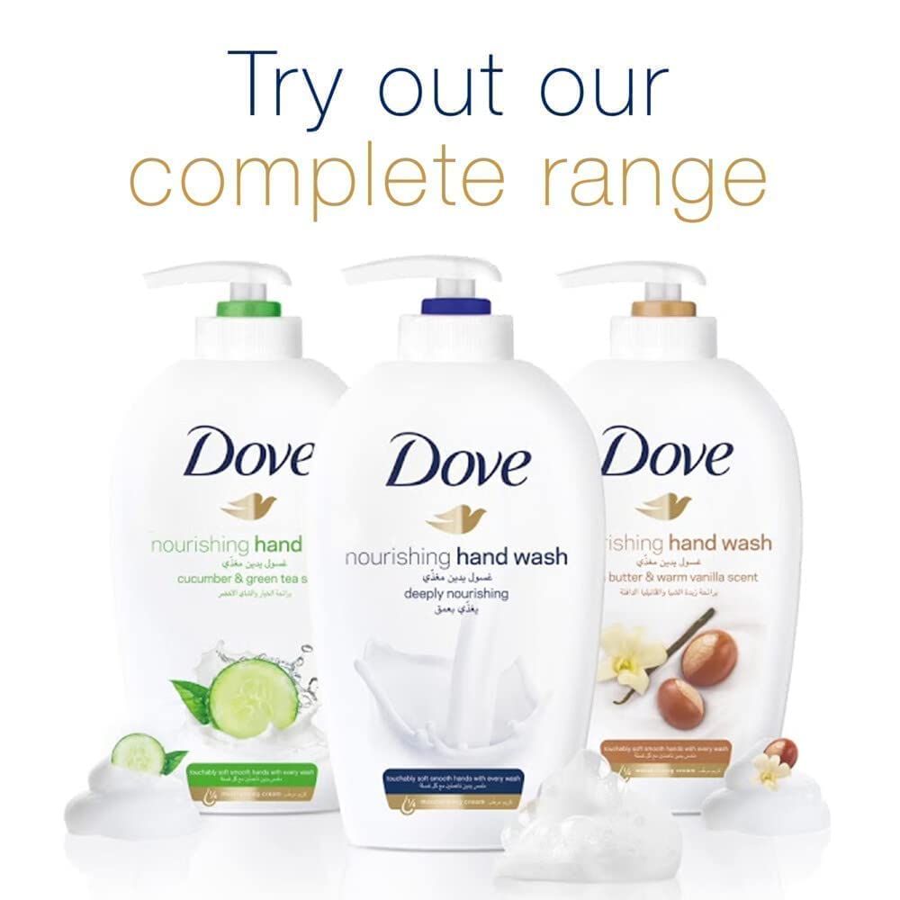 Dove Cucumber & Green Tea Hand Wash has a moisturising formula that effectively cleanses while protecting your hands from dryness for everyday hand hygiene. With its refreshing scent of cucumber and green tea, this hand soap will fill your bathroom with a revitalising essence while you wash your hands. Enriched with our signature ¼ moisturising cream, it moisturises your hands, making them feel soft, smooth and cared for with every use. Dove Go Fresh Cream Hand Wash makes hand washing a refreshing experience and leaves skin feeling blissfully revived. Enjoy the look of radiant skin and the refreshing scent of cucumber and green tea with this gentle hand wash. Dove Go Fresh Beauty Cream Hand Wash combines a refreshingly light formula, a revitalizing scent plus ¼ moisturising cream to help give you skin that feels soft, smooth and cared for. Simply dispense a pump of Dove hand wash onto your wet palms and gently lather into a creamy foam before rinsing hands thoroughly. You’ll instantly enjoy the delicate cucumber and green tea fragrance and hands that feel soft, fresh, and clean. Avoid contact with eyes. In case of contact, rinse well with water. Discover our full range of products for other options with different ingredients such Shea Butter & Warm Vanilla suitable for sensitive skin.
