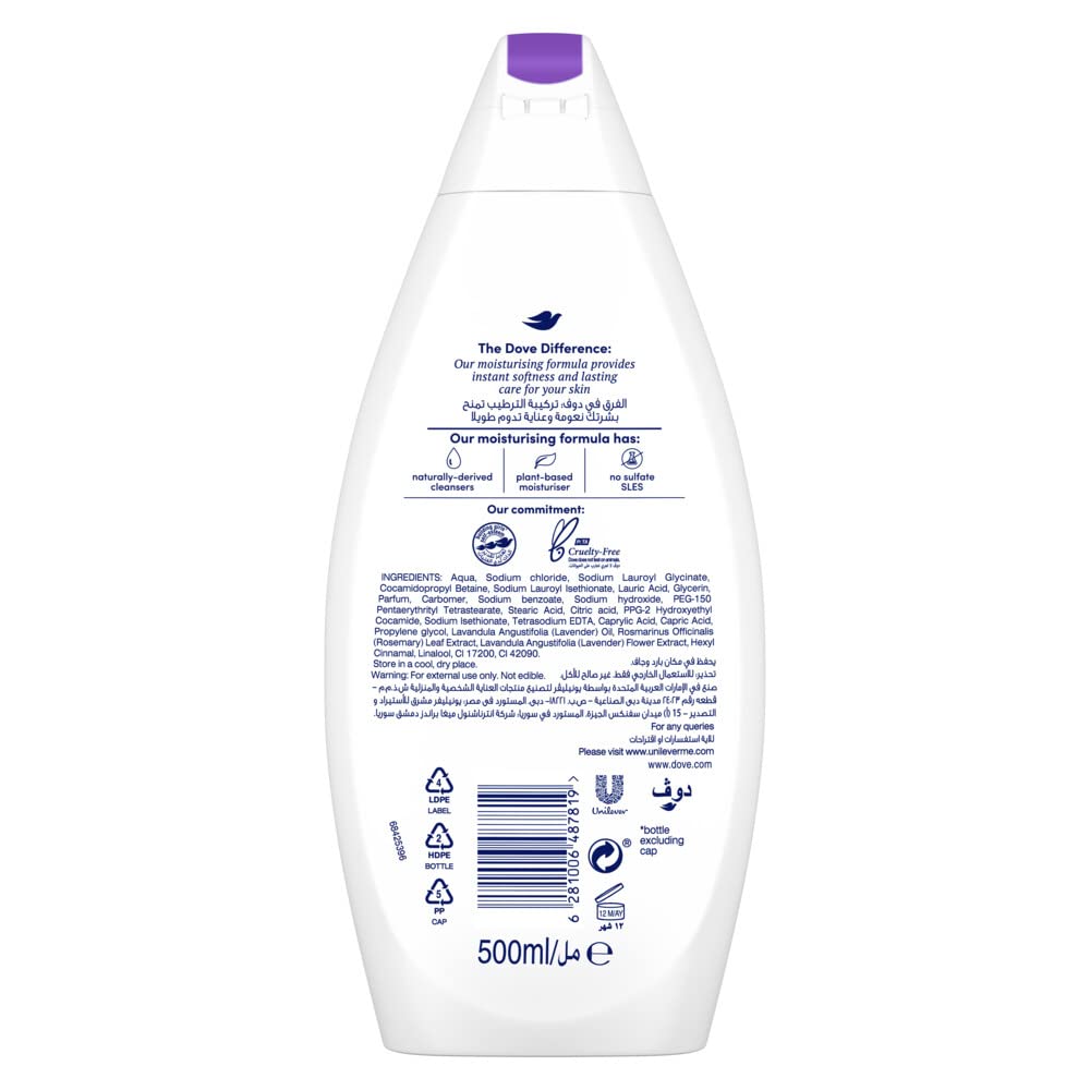 Start your day with the relaxing scent of lavender and rosemary and enjoy the feeling of softer, smoother skin. Showers are the most relaxing part of our day. To make them even more refreshing, why not add a dash of lavender and rosemary scent to your body wash? Dove Go Fresh Relaxing Body Wash uses gentle cleansers to maintain your skin’s natural moisture and NutriumMoisture™ technology to deposit skin's natural nutrients. Gentle add-on to your skin care. So, if you’re wondering how to get smooth skin – with this Dove body wash you can get softer, smoother skin after just one shower. Its revitalising fragrance and nourishing and moisturising ingredients will boost your mornings with an extra energy punch. A refreshing shower can be just what you need to start the day off right. Dove's Go Fresh range blends nourishing ingredients and light, fresh scents in a formula that's gentle on your skin. Dove Go Fresh body washes give you the feeling of hydrating freshness that leaves you and your skin feeling blissfully revived. Squeeze your Dove shower gel onto a shower puff or your hands and smooth the lather over your skin, enjoying the fresh fragrance. Rinse away with warm water and enjoy soft, clean skin. Dove, cleans like a soap, moisturizes like a cream
