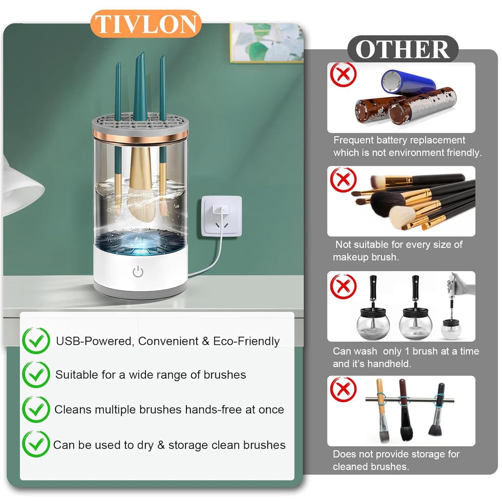Electric Makeup Brush Cleaner, 1 Pack Cosmetic Brush Cleaner Automatic Spinning Makeup Brush Cleaner Fit For All Size Makeup Brush