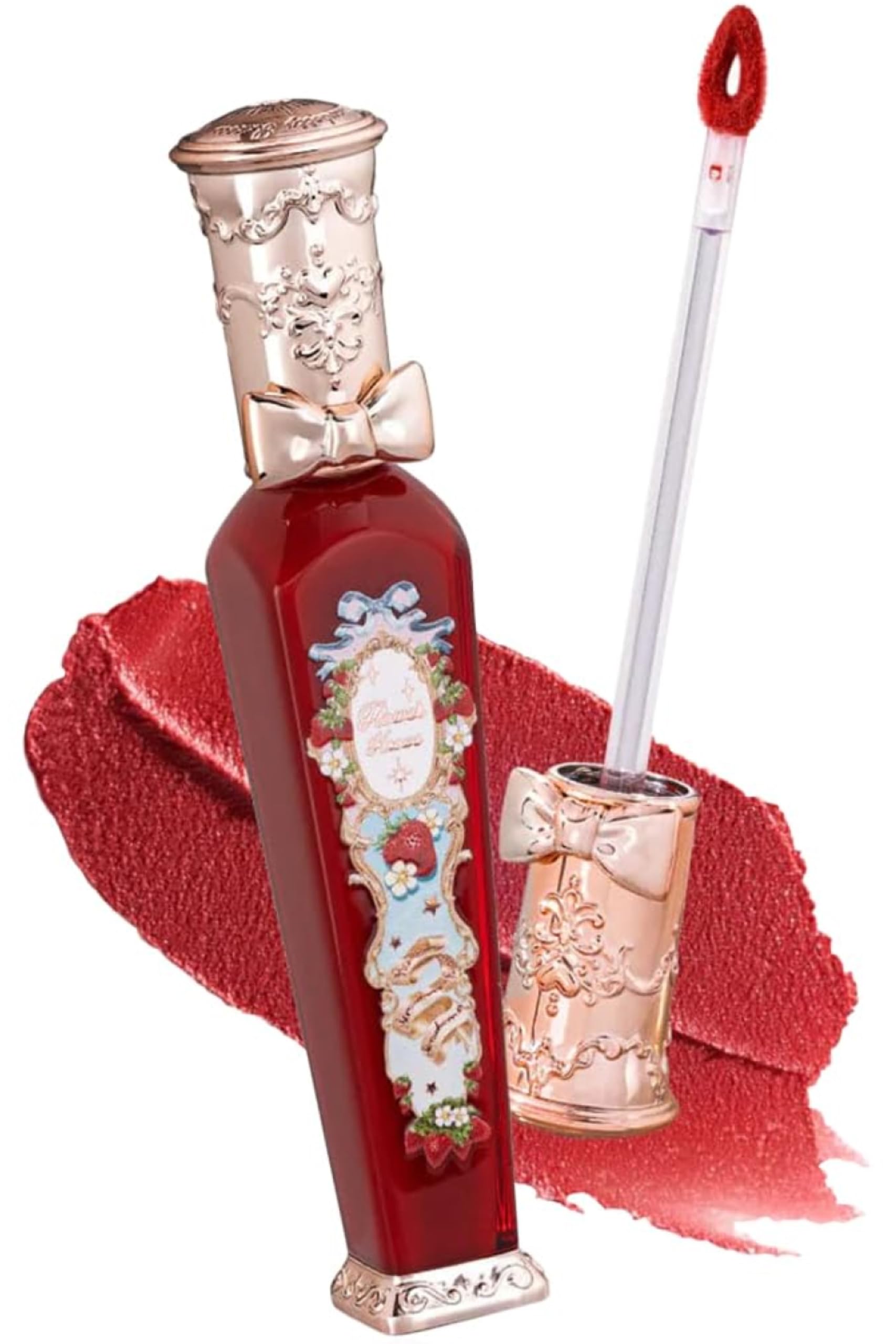 The flower knows the vintage perfume bottle as inspiration, combined with the charming strawberry elements of the girl's heart, the classic romance of the Rococo era designed on the lip glaze, is at the heart of delicate elegance.