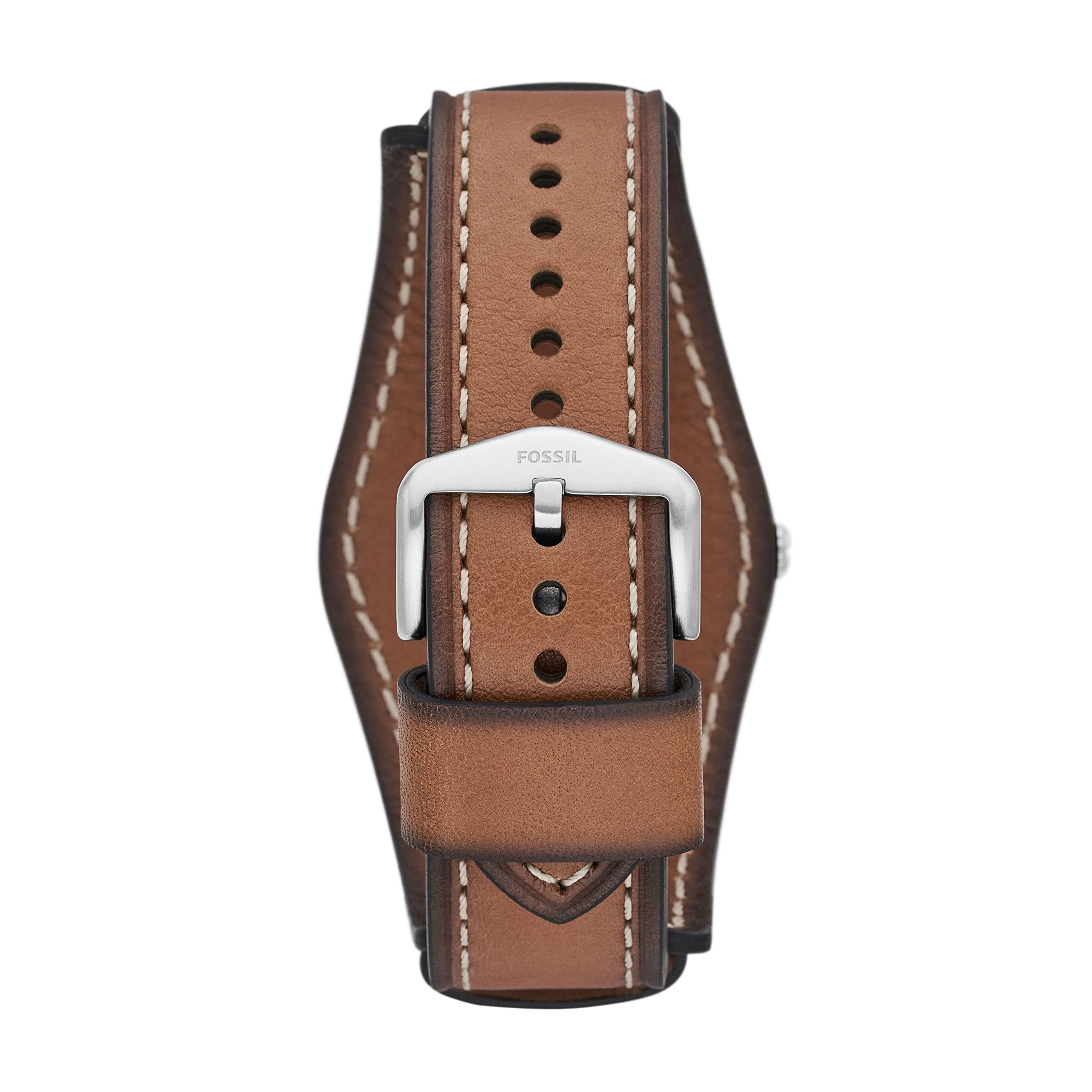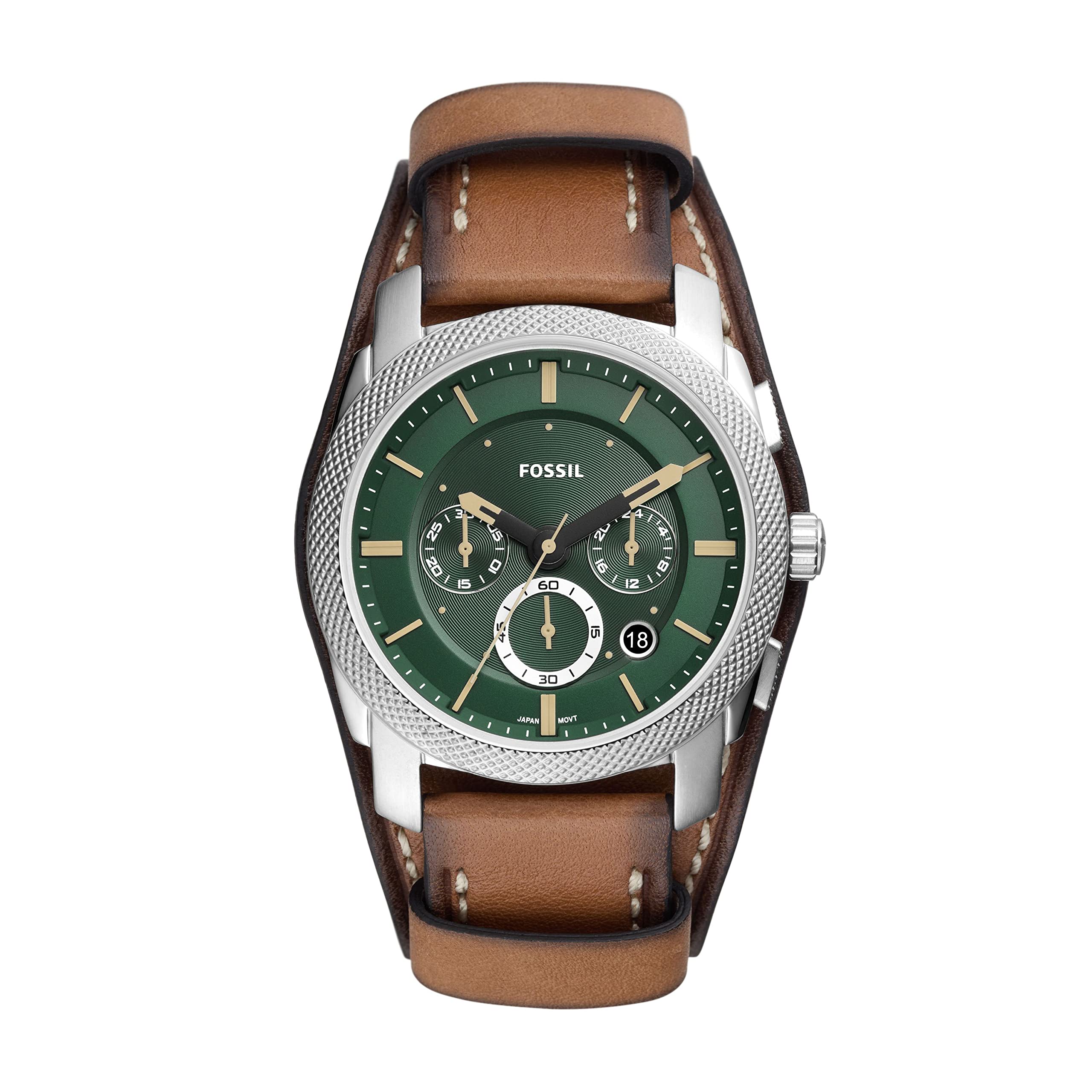 Fossil FS5962 Machine Chronograph Tan Eco Leather Watch is made of stainless steel and combined with a leather belt. Feature water resistance up to 50 meters that means it can be submerged in water for periods, so can be used for swimming and fishing. It is not recommended for high impact water sports. Include toggle clasp closure secures the watch firmly and provides complete protection from falling. It is stylish round watch looks unique and sophisticated. Suitable for a variety of outfits. Perfect to gift your loved once.
