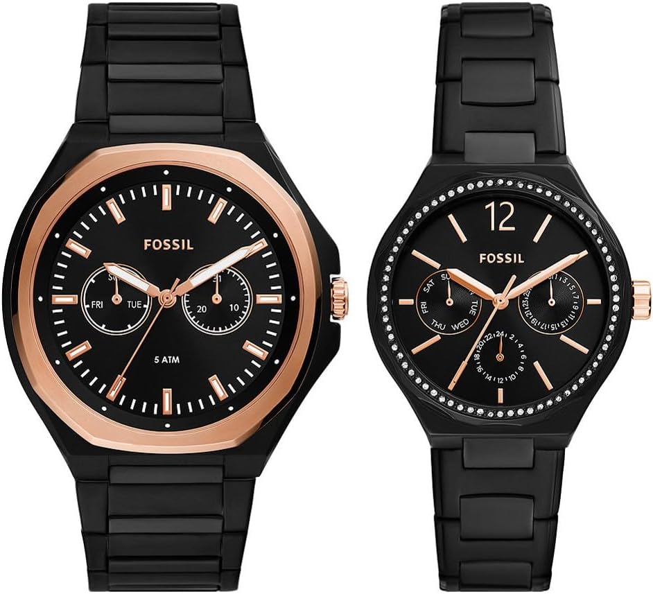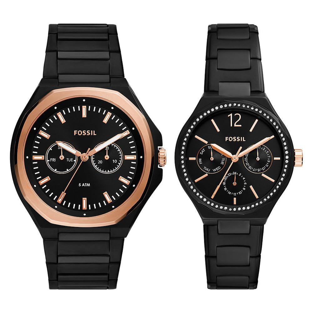 Fossil His and Her Multifunction Black Stainless Steel Watch Set - BQ2645SET