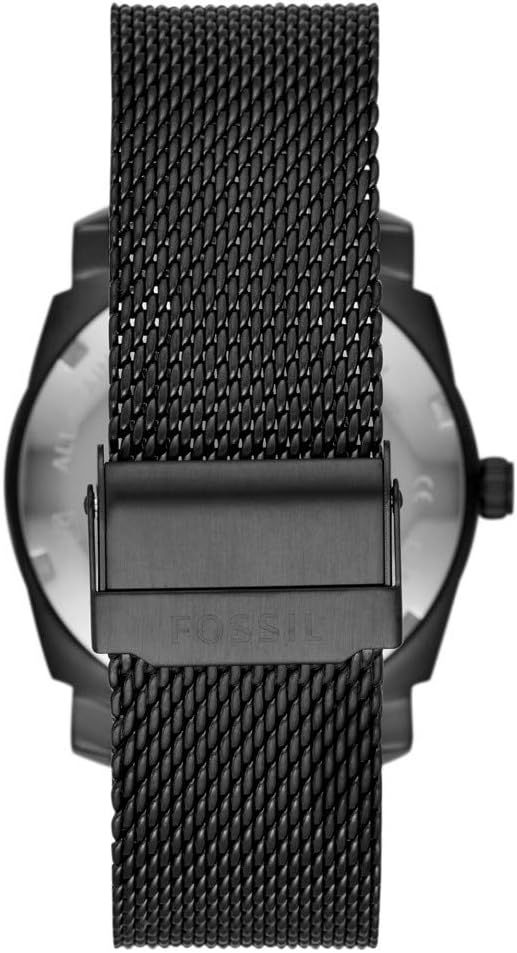 This 42mm Machine features a blue sunray dial, three-hand date movement and a black steel mesh bracelet.