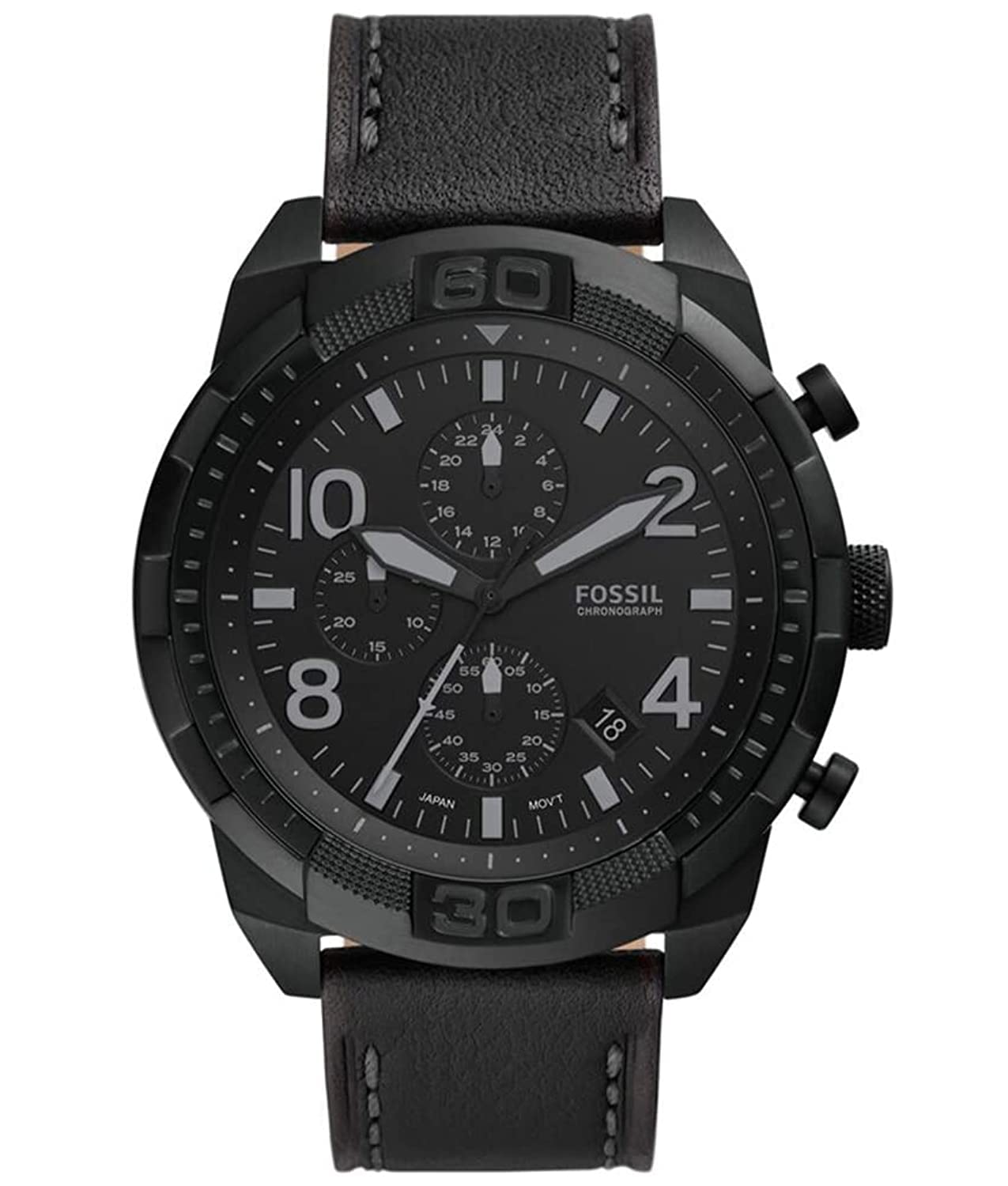 This 50mm Bronson features a black satin dial, chronograph movement and black eco leather strap.