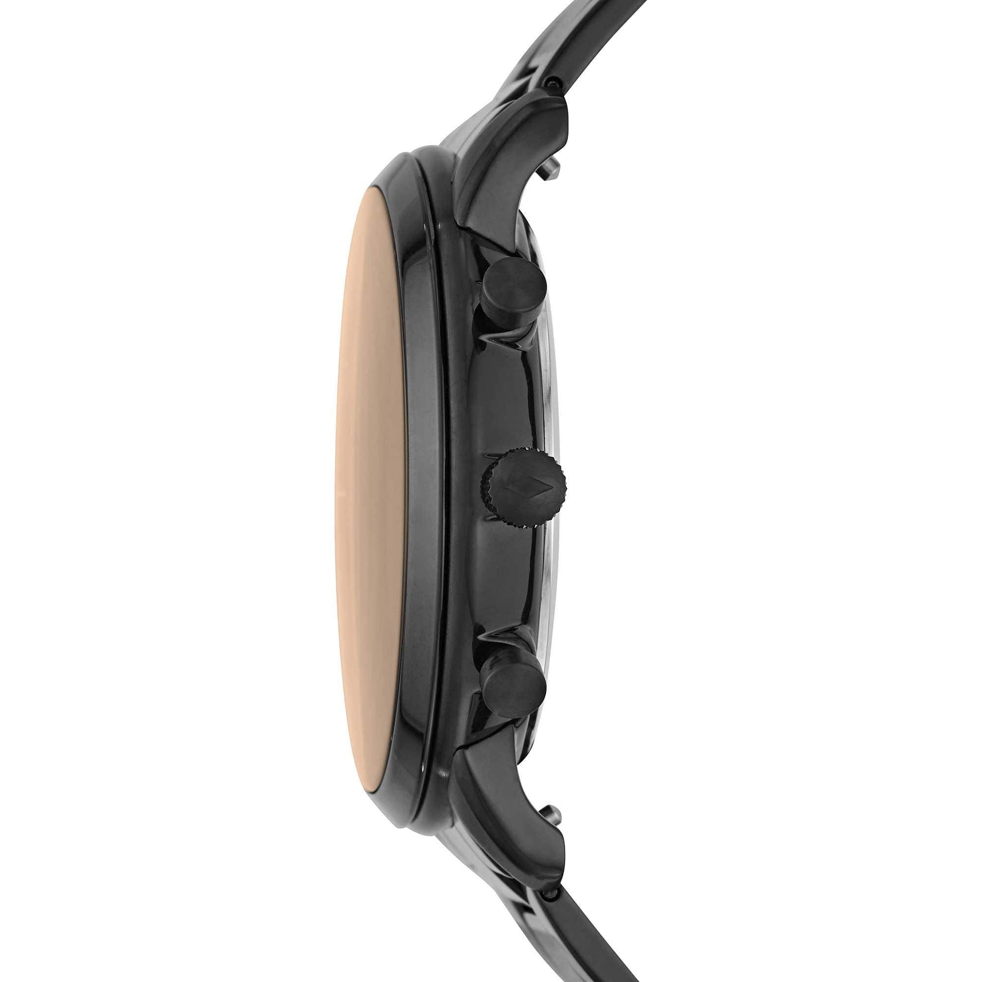 This 44mm Neutra features a black satin dial with an amber crystal, chronograph movement and a black steel bracelet.