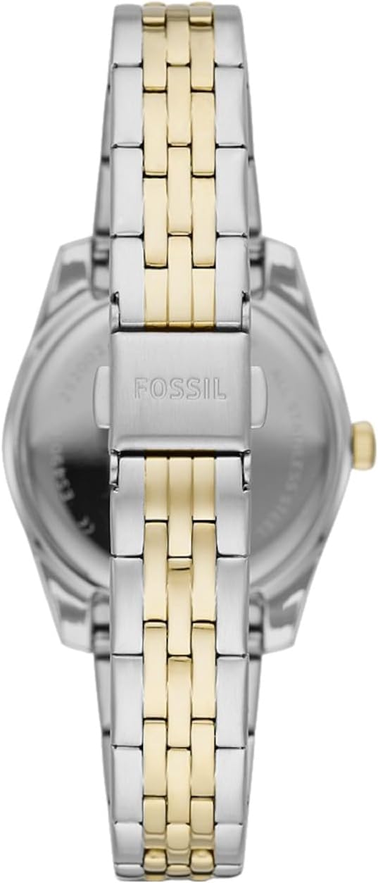 This Scarlette Mini watch with a 32mm case has a 3-hand movement with date display, a gold Sunray dial and a silver and gold tone stainless steel strap.