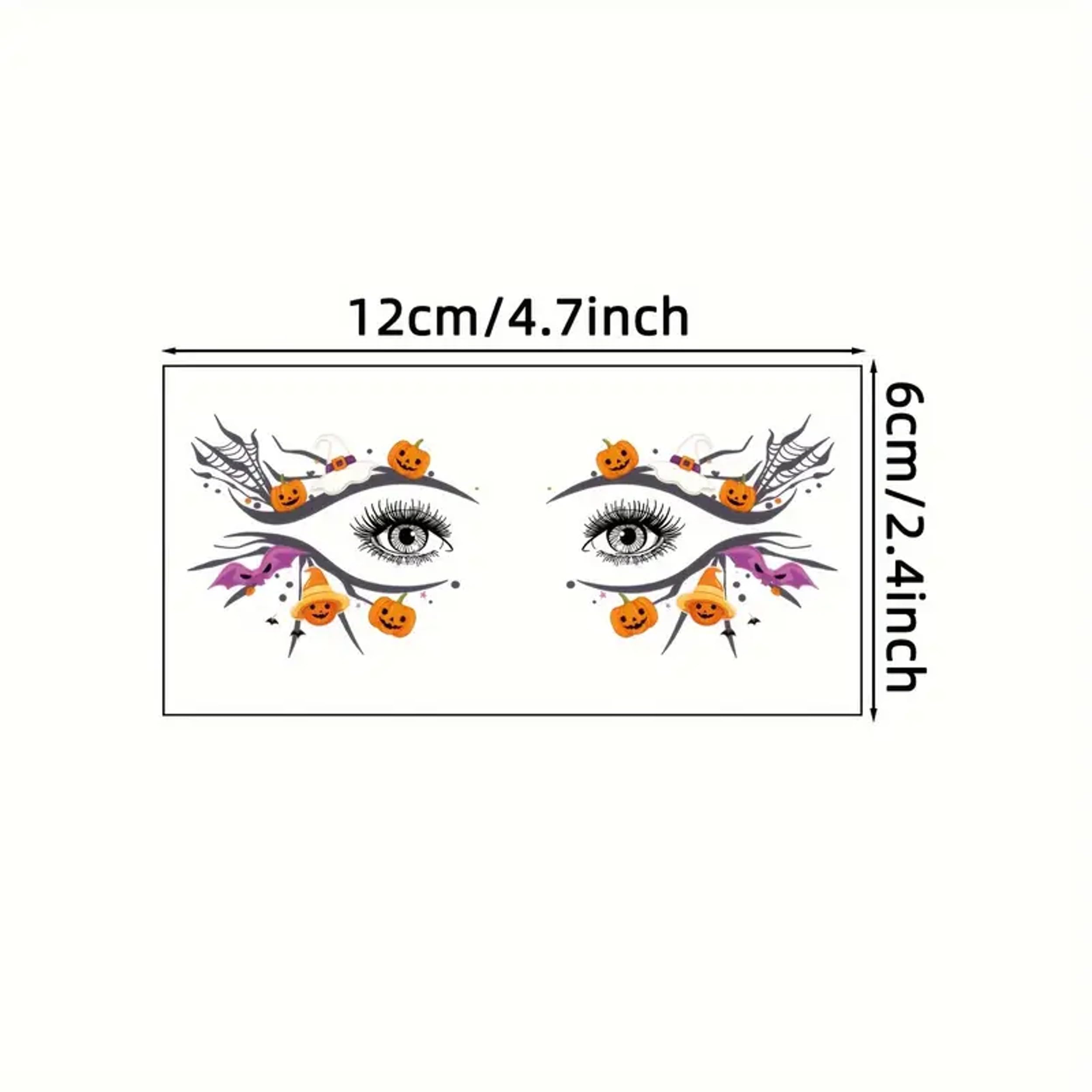 Unleash your creativity and embrace the spooky spirit with these vibrant Halloween eye tattoos! This 10-pack of waterproof, realistic, and colourful fake tattoo stickers features an array of festive designs, including pumpkins, bats, spider webs, witches, skulls, and ghosts. These eye-catching temporary tattoos are perfect for Halloween parties, costume events, or adding a touch of whimsy to your everyday makeup routine. Effortlessly elevate your look with these intricate and detailed eye tattoos that cling securely to your skin. Whether you're aiming for a haunting or playful vibe, these versatile stickers offer endless possibilities for self-expression. Indulge in the Halloween festivities and let your eyes captivate with these mesmerising temporary tattoos.