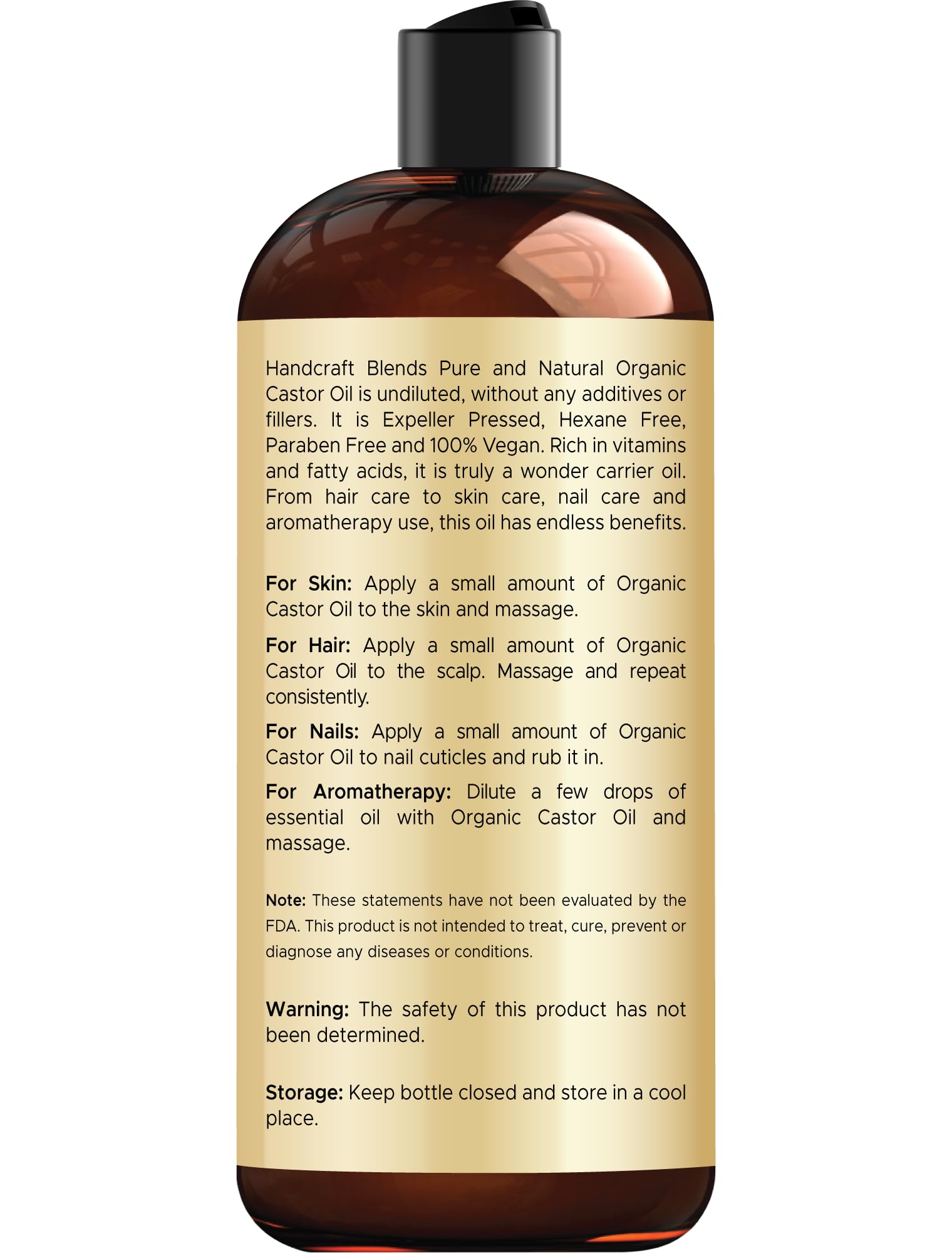 Handcraft Castor Oil for Hair Growth, Eyelashes and Eyebrows - 100% Pure and Natural Carrier Oil, Hair Oil and Body Oil - Moisturizing Massage Oil for Aromatherapy - 8 fl. Oz. 100% PURE & NATURAL CASTOR OIL – Our castor carrier oil is used for essential oils mixing, hair care skin care, aromatherapy massage and has endless uses. HAIR GROWTH OIL – Castor Oil helps moisturize and strengthen hair follicles locking in moisture in hair shaft for healthier looking hair. A moisturizing hair oil for women and men, is good for all hair types. CASTOR OIL FOR EYELASHES AND EYEBROWS – Castor oil is full of nutrients that promote natural lash growth and hair growth. Known to help strengthen eye lashes and eyebrows to create a naturally full lash line. SOOTHING MASSAGE OIL - Castor oil is an excellent massage oil for muscle soreness relief. If you have sore feet, sore muscles or joint apply a little castor oil on the sore area and rub it in. NATURAL SKIN MOISTURIZER – Adding castor oil to your skincare routine can help nourish and hydrate the skin. It contains many awesome fatty acids that deeply penetrate the skin and retain moisture.