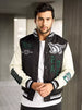 Stay warm and stylish with this varsity jacket featuring PU sleeves. This applique detail jacket provides a comfortable fit with its hooded neckline and long sleeves. Pair this jacket with your favorite jeans or trousers to complete your look.