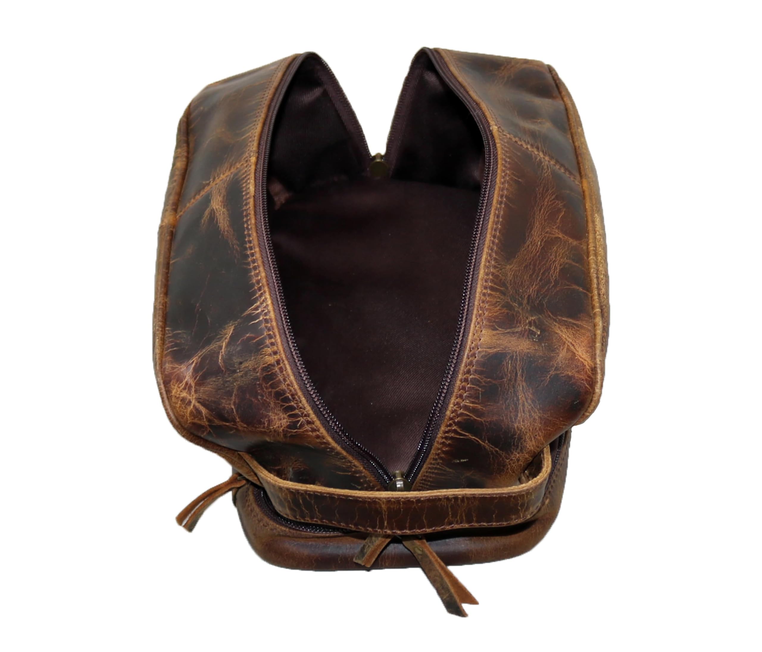 HAND CRAFTED TO LAST A LIFETIME: While other brands use faux or PU leather, we use 100% genuine soft, hard-wearing water buffalo leather. We trust ours is thicker than other leather toiletry kits for a distinct quality feel. The distressed rustic finish has a rugged durability that will stand the test of time LEATHER WATERPROOF LINING - Style functionality. Exterior Top grain buffalo leather combines with a nylon inner lining & a water resistant inner bottom. PERFECT GIFT - Looking for that perfect gift for a birthday, anniversary or wedding? Surprise your husband, brother, father or fiancee with a Jaald toiletry travel bag, the perfect gift that will last a lifetime. ENOUGH ROOM FOR ALL YOUR BATHROOM BASICS: The compact yet spacious compartment with protective water resistant lining holds everything you need. A main compartment & two small open pockets to store smaller items to keep your products organised. Measures 10 inches x 5 inches x 5 inches. WIDE OPENING FOR EASY ACCESS: Find what you need in seconds without having to rummage around. High Quality YKK Metal zippers make opening and closing a breeze. We use good quality zippers that will stand up to the test of time. Complete with leather handle for easy carrying.