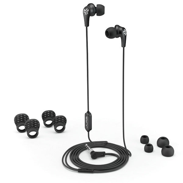 Treat yourself to a premium listening experience with these JLab JBuds Pro earbuds. Their adjustable tips let you choose between a relaxed and snug fit, and the cush fins and get help reduce noise. These JLab JBuds Pro earbuds have a universal mic with track controls, so you can control music playback and answer calls.Β
