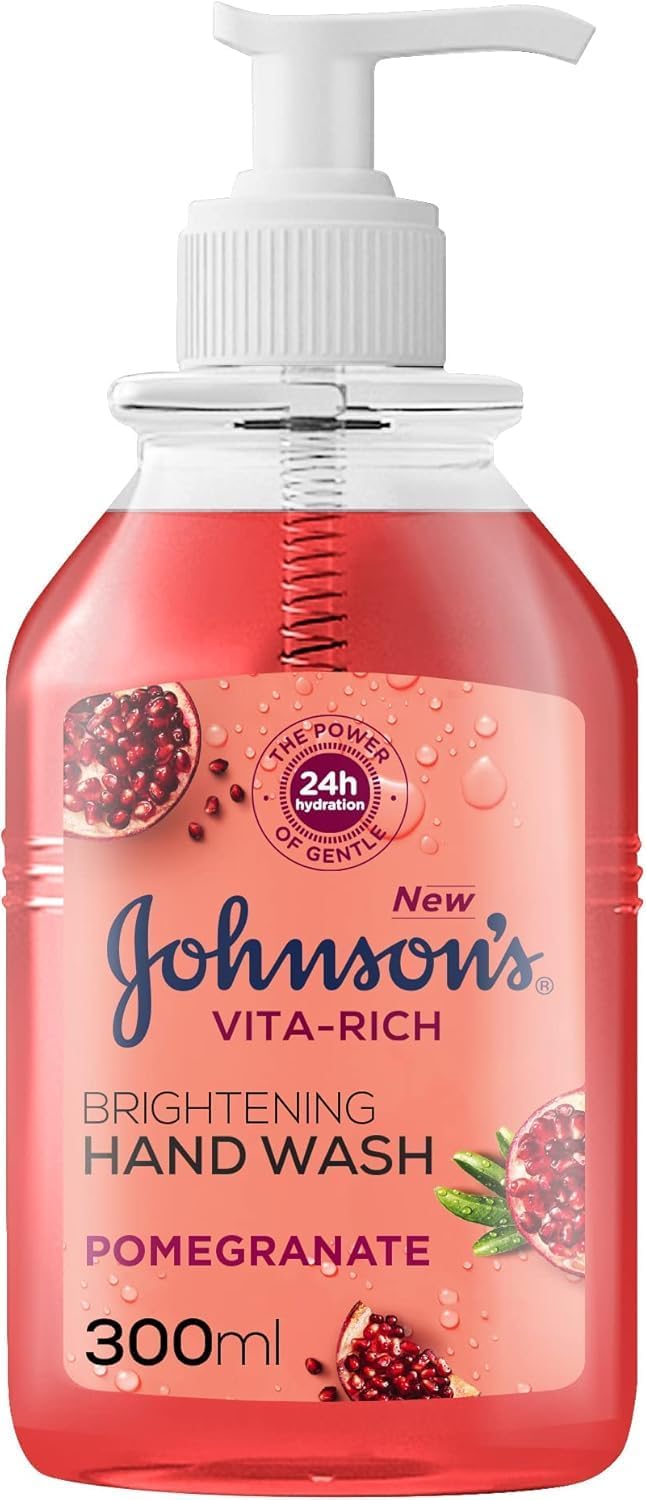 Johnson's vita-rich brightening hand wash effectively removes dirt and impurities without drying out your skin. Infused with pomegranate extract and moisturizing glycerin, this rich formula of Johnson's vita-rich brightening hand wash hydrates and brightens your skin. Pomegranate is rich in antioxidants that delay the ageing process and reveals smoother, brighter, and even-looking skin. This hand wash leaves your skin feeling beautifully soft and radiant. It is proven gentle to be used multiple times in a day. Enjoy the experience β this is your time!, the vita-rich body care range is the latest from Johnson's. Inspired by nature for healthy-looking skin. Discover the gentle power of Johnson's vita-rich range of body lotions and washes, formulated with ingredients derived from nature to help protect skin from the harshest environments and keep it freshly scented and moisturised.