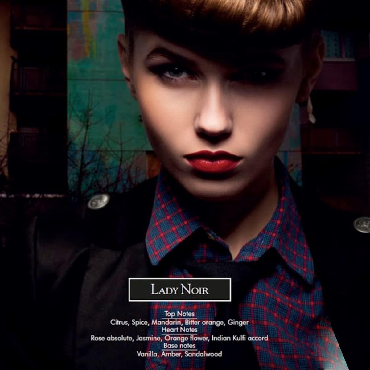 Just Jack Lady Noir Perfumes For Women Eau De Parfum 100ML, For Her Long Lasting Fragrance. Lady Noir denotes a mesmerizing enigma of a woman with a bold floral oriental fragrance that is both overstated and delicate. Top Notes: Citrus, Spice, Mandarin, Bitter Orange, Ginger. Middle notes Rose Absolute, Jasmine &, Orange Flower, Indian Kulfi accord. Base Notes: Vanilla, Amber, Sandalwood
