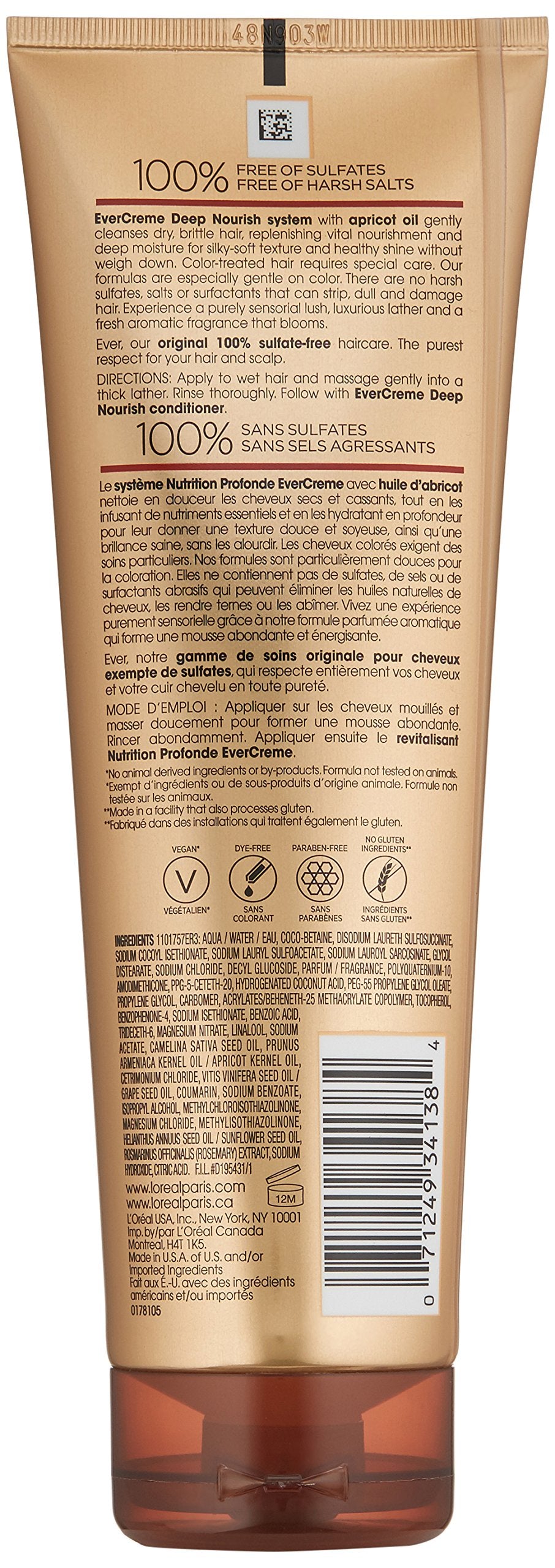 L'Oréal Paris EverCreme Sulfate Deep Nourish Shampoo, 8.5 fl. oz.