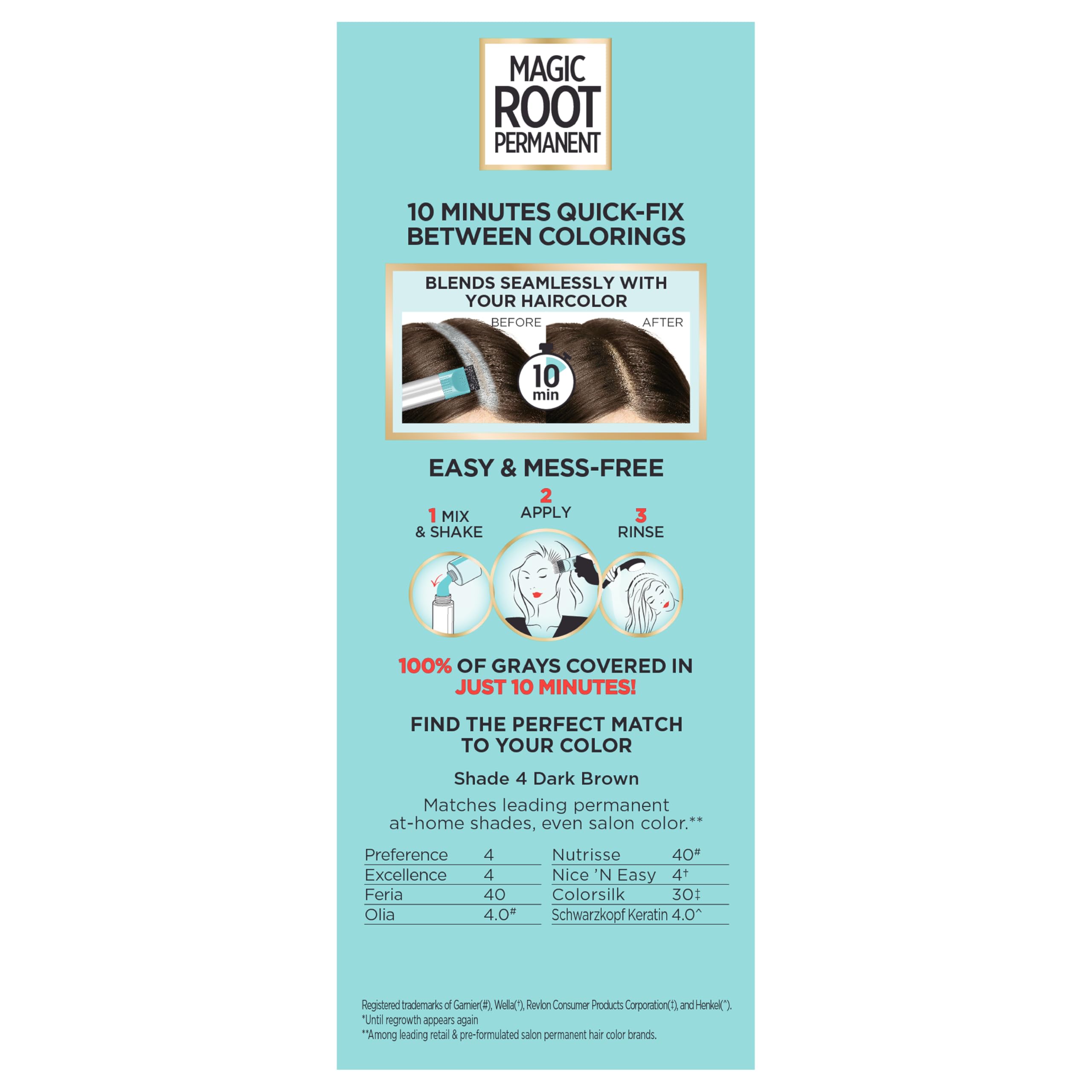 Rescue roots in between colorings! L’Oreal Paris Root Rescue is a permanent, low ammonia color gel with built-in conditioning and an aromatic scent. The Quick Precision Applicator makes touching up roots fast, easy, with no mess. 100% gray coverage. No uneven touch-ups, just seamless, beautiful color from root to tip.