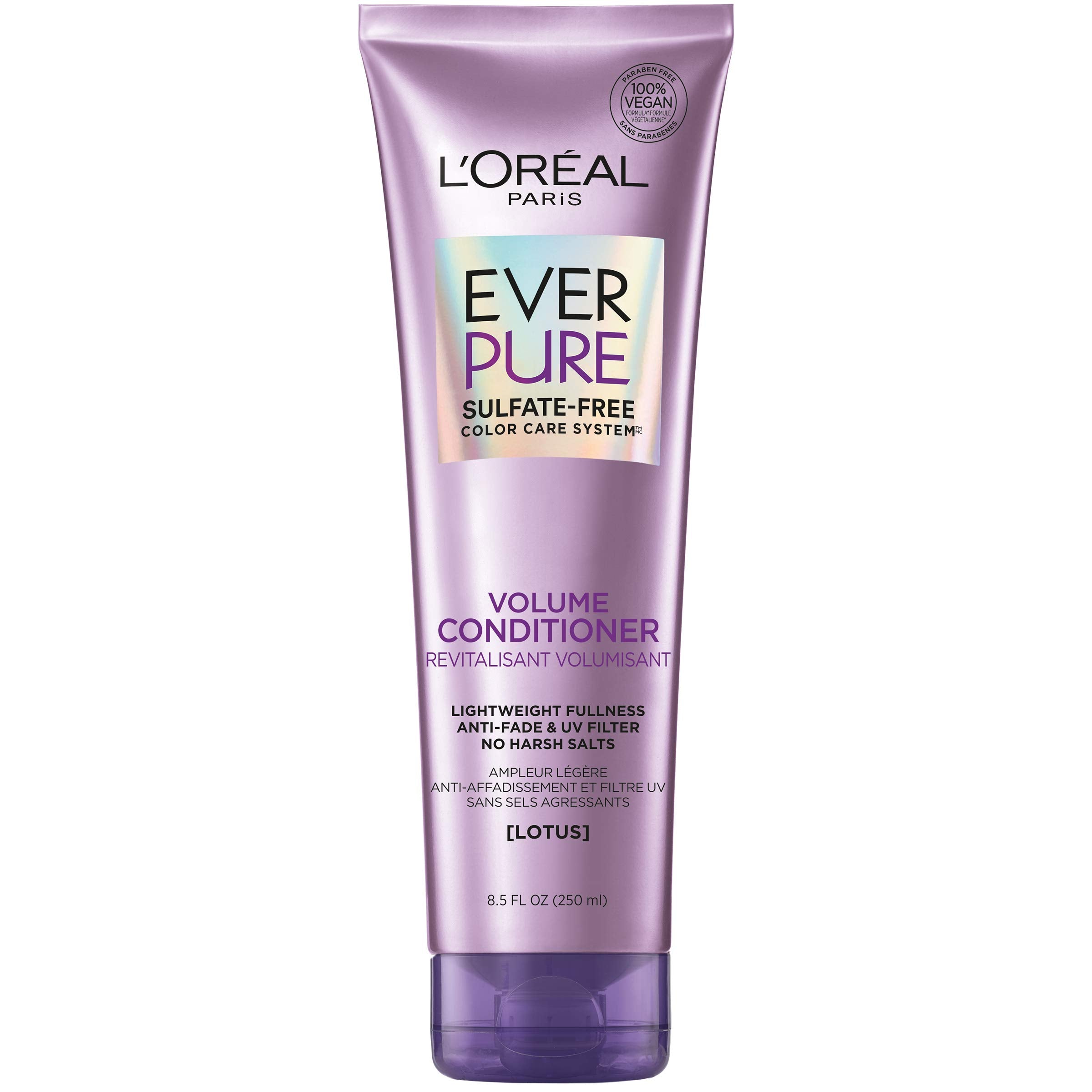 L’Oral Paris EverPure Volume sulfate free conditioner with lotus flower is lightweight and revives fine hair and flatness with lasting body. Keeps color pure up to 4 weeks. Our formulas are especially gentle on color treated hair. There are no harsh sulfates, salts or surfactants that can strip, dull and damage hair. Experience a purely sensorial lush, luxurious lather and a fresh aromatic fragrance that blooms. • Provides Lasting Volume • Sulfate Free • Keeps Color Pure for up to 4 Weeks • Lotus Botanicals After using EverPure Volume shampoo, apply to wet hair and massage gently. Leave on for 1-2 minutes. Rinse.