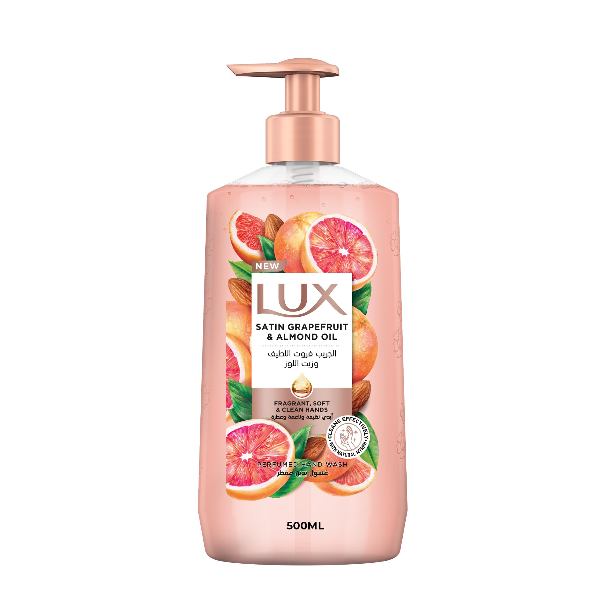 Give your hands the royal treatment they deserve with Lux Satin Grapefruit Perfumed Hand Washβyour daily companion to keeping hands clean and fresh. Indulge in the refreshing grapefruit fragrance that invigorates and uplifts your senses with every wash. And not just that! This refreshing liquid hand wash is crafted with skin-loving ingredients, such as Natural Myrrh, which not only helps clean your hands effectively but also supports skin health. In addition, the gentle and nourishing formula with alomond oil and glycerin provides moisturizing benefits, leaving your hands feeling soft, smooth and supple. Pamper your hands every day with our refreshing and gentle hand wash formula. Treat them with the care they deserve with our nourishing ingredients. And indulge in its exquisite and luxurious fragrance for beautifully scented, velvety soft and protected hands you will love. With Lux Satin Grapefruit Perfumed Hand Wash, you can rest assured you and your family will enjoy a good hand health. Keeping our planet in mind, our hand wash bottle is crafted using 95% recycled plastic to tackle plastic problem and protect our environment. Discover the world of Lux. From shower gels to hand washes, we help give you and your family the luxurious shower and cleansing experience at home.