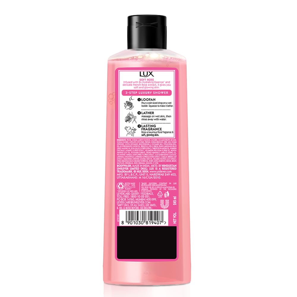 Want extra from your soap? Switch to Lux Soft Skin Body Wash for 3 extra benefits. Indulge in extra foam, extra softness in an extra gentle formula. Indulge in a daily bath that captivates your senses with a delicate blend of French Rose extract & sweet Almond oil, that leaves your skin feeling soft and glowing. The alluring scent of French Roses will turn your shower into a moment of pure pleasure. Crafted by the world’s best perfumers, top notes of bergamot and red fruits fill your senses before evolving into a feminine floral heart of rose, white florals and violets for perfume that indulges. At the base of this LUX fine fragrance body wash sits musk, amber and vanilla – sweet scents that softens the fragrance and lingers on your skin. Formulated with glycerine, a well-known skincare ingredient that helps preserve skin’s natural moisture, Lux Soft Skin Body Wash leaves your skin feeling soft and glowing. Lather up for a sensorial shower like never before in just 3 steps: Step 1 - Create rich foam by pouring a coin sized drop on a wet loofah. Squeeze to make it lather. Step 2 - Massage rich lather on wet skin, then rinse away thoroughly with water. Step 3 - Enjoy an alluring floral fragrance and soft, glowing skin.