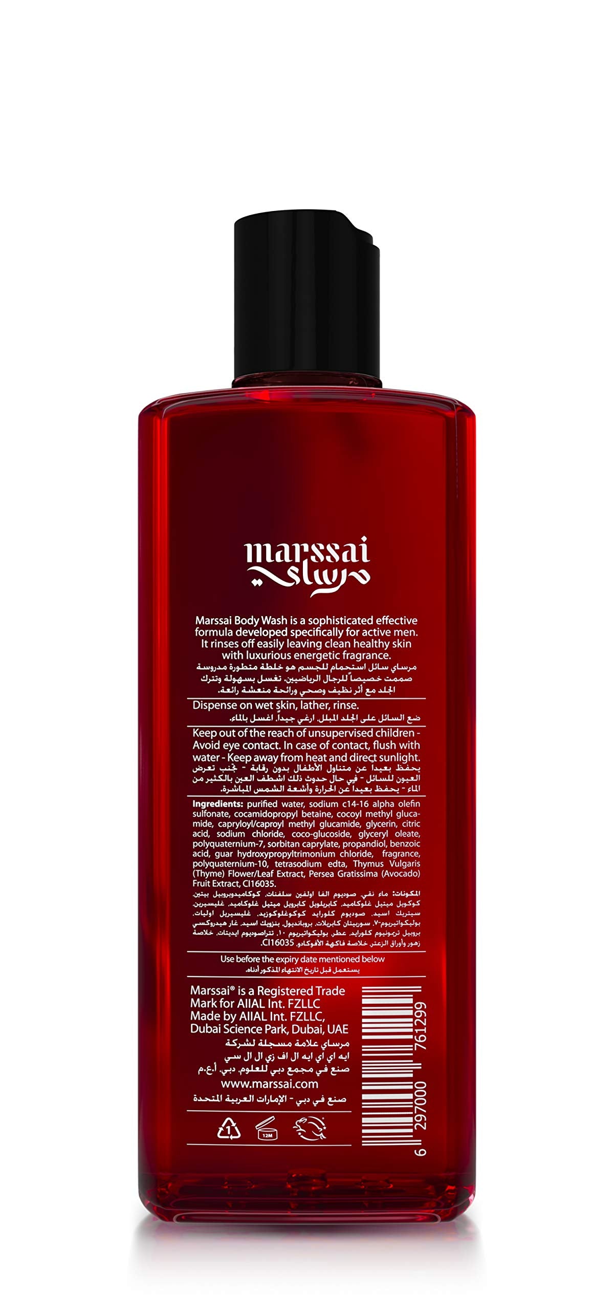 Marssai Hair & Body Wash for Men represents a new era of men's personal care. The range is sulphate-free which is the best approach to prevent hair loss and irritation. The components are used in an optimized ratio to provide effective cleaning and leave the hair and skin soft and without residue. Marssai 2-in-1 Hair & Body Wash is sophisticated with effective formula developed specifically for active men. It gives the advantage of quick hair and body wash with the best results for hair, scalp and skin, without compromise. The rich lather spreads and rinses easily leaving healthy clean hair and skin with a luxurious fragrance. Marssai Royal Saffron body wash enables a fast route to a successful bath routine and it's created for people who like to drive in the fast lane, to live life to the fullest. The worlds' most expensive spice for the most alluring shower experience, creates a luxurious, yet seductive shower time, that engages the senses, being as gentle as effective for the skin., With an intense and peculiar spiciness, Royal Saffron will spice up your life and drive your way to success.
