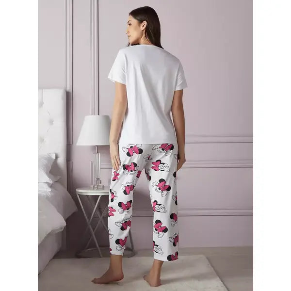 Catch the eye in this adorable Minnie Mouse pyjama set. The cropped top features a playful all-over print of Minnie's iconic bow, while the shorts are adorned with a delicate bow pattern. Made from soft cotton, this set guarantees comfort and style during your restful moments.