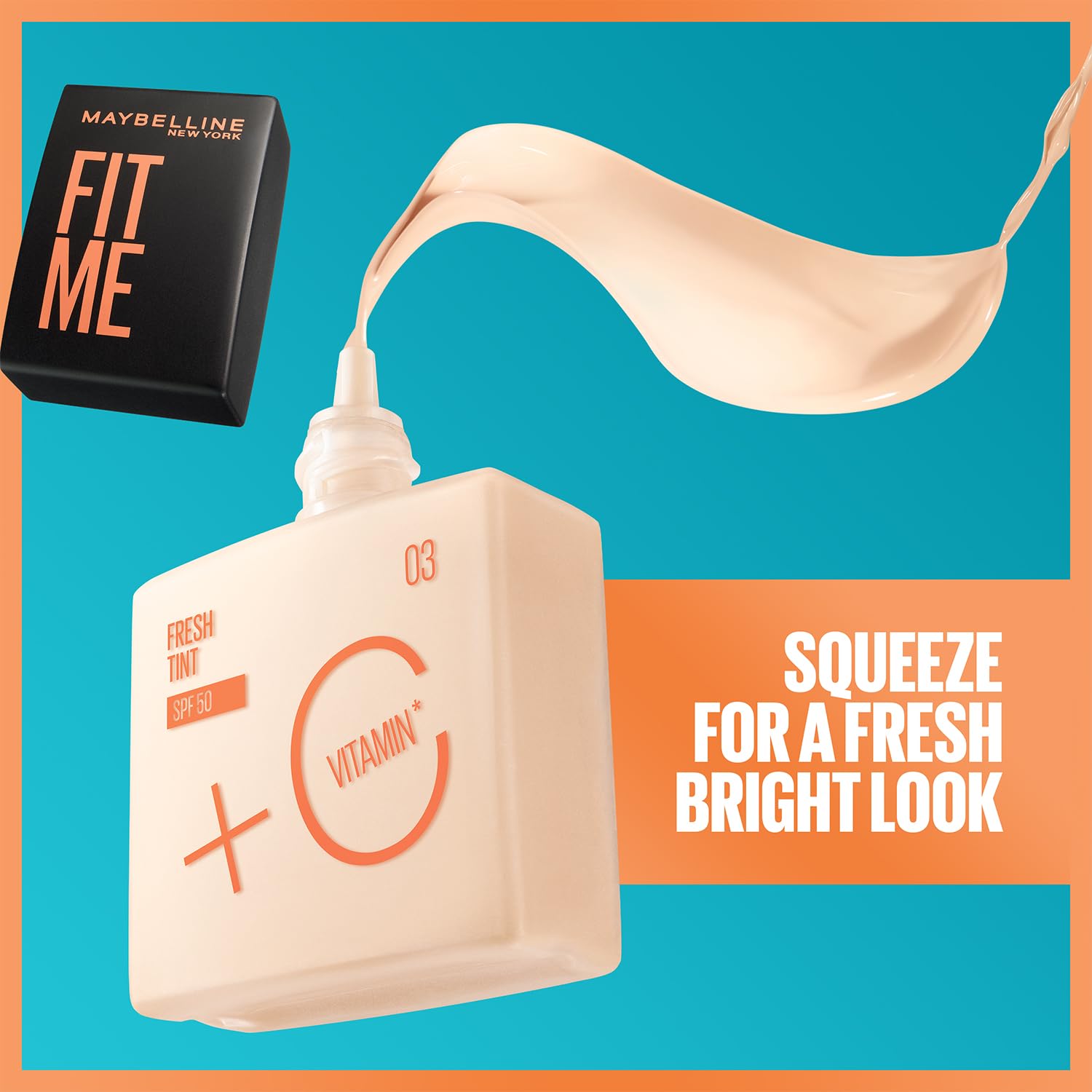 Squeeze for a natural fresh fit: bright look and feel. Fit Me Fresh Tint with SPF 50 is infused with Vitamin C to brighten and transform skin. Its kind-to-skin formula glides on easily to, leaving behind a fresh natural finish. This makeup tint infused with skincare benefits protects and prevents dark spots, while leaving skin looking healthy and feeling moisturized all day, every day. Enhance your beauty with a naturally fresh, bright look. Available in 7 skin-fitting, pigmented shades that are perfect for your skin tone and texture. This foundation enhances your natural skin tone, for a fresh, bright look and feel!