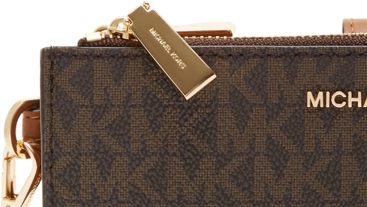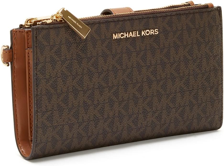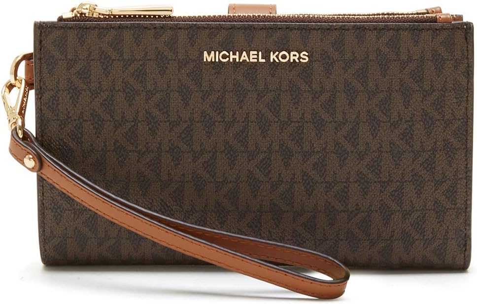 Jet set with double zipper wristlet in soft king leather. 7.52 W x 4.25 H x 0.75 D