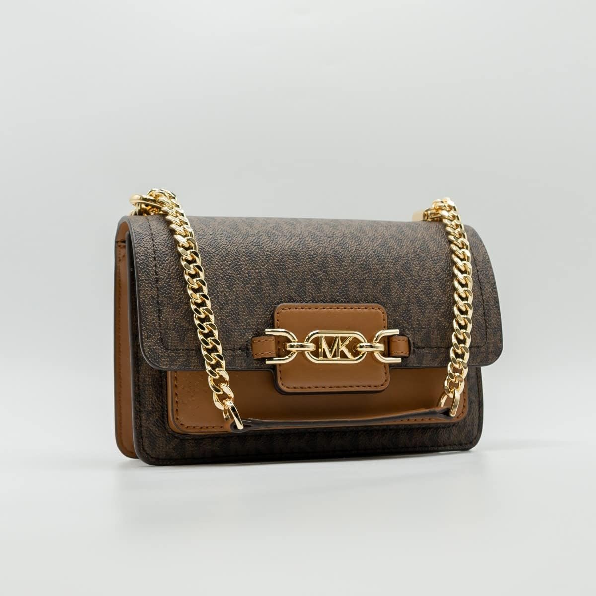 Heather Extra-Small Logo Crossbody Bag. A smart and polished piece for every day, the Heather crossbody bag is crafted from Signature-print canvas in a modern fold-over silhouette with branded hardware for a novelty finish. 7.75”W X 4.75”H X 2.25”D