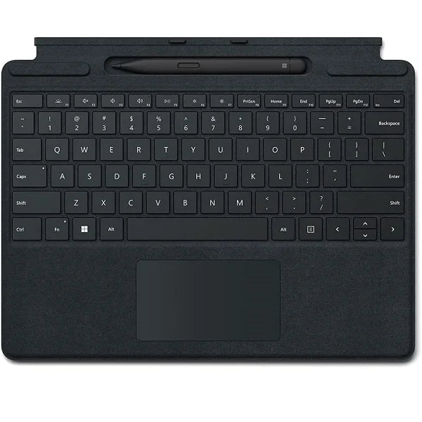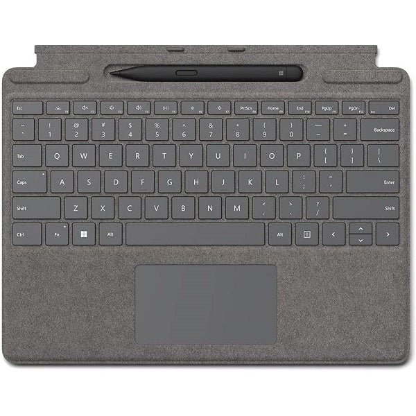 Get the most out of your Surface Pro 8 and Surface Pro X device with the Surface Pro Signature Keyboard Cover and Slim Pen 2 Bundle from Microsoft. This bundle includes a stylish, ice blue colored Surface Pro Signature Keyboard Cover that features an elegant Alcantara covering, mechanical keys, and a large glass touchpad. The keyboard also has a built-in storage space that wirelessly charges the included Surface Slim Pen 2. Bringing both together with your compatible Surface Pro device helps you to stay productive and ready for whenever inspiration strikes.