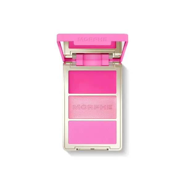 Capture how skin looks in life’s most thrilling moments with this multi-finish face trio, featuring three textures—a satin cream, a luminous balm, and a velvet powder—in monochromatic tones. Mix and match for custom colors, effects, and finishes.