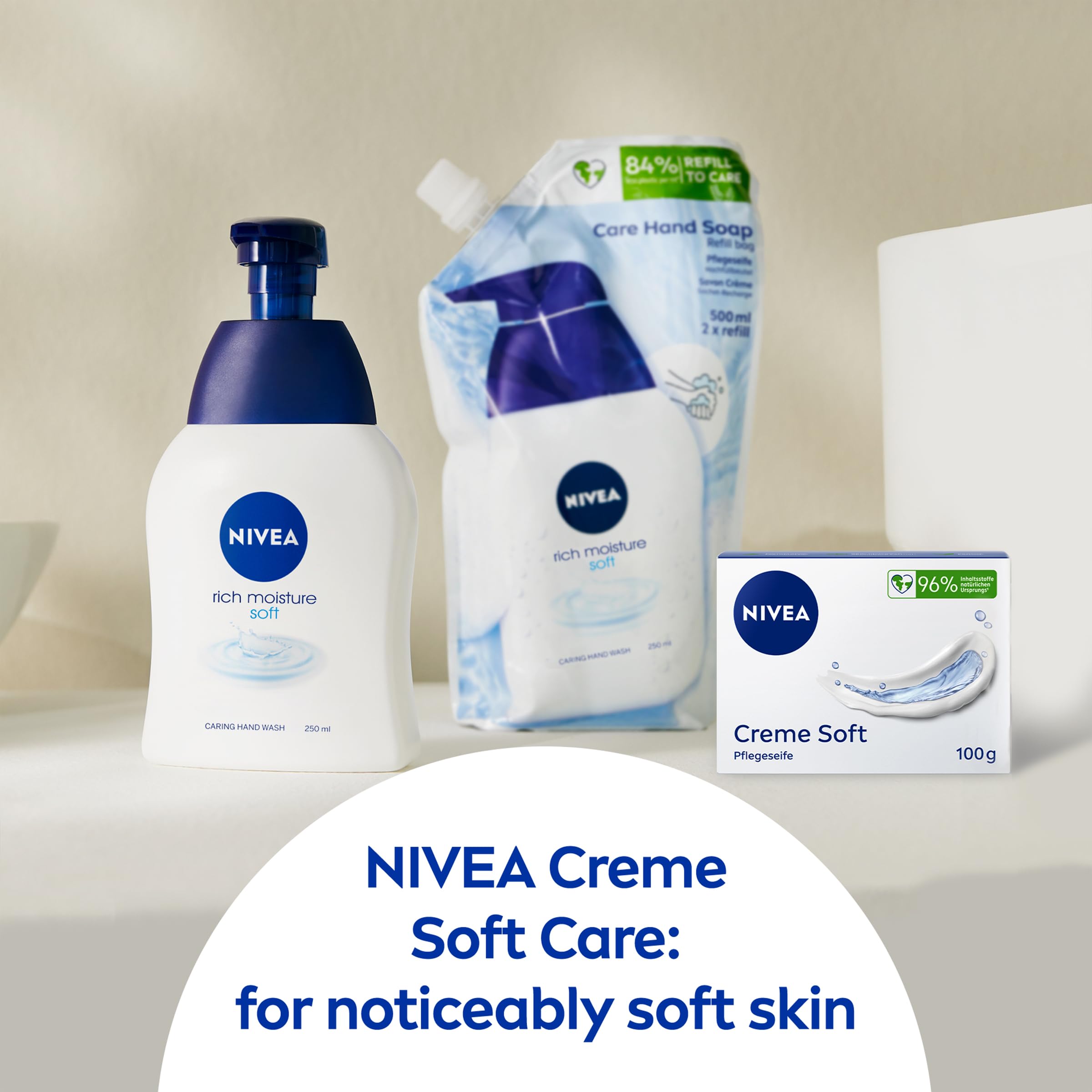 NIVEA Hand Wash Rich Moisture Soft Soap β protects your hands while washing NIVEA Rich Moisture Soft Hand Wash protects your hands while washing. We wash our hands multiple times every day and so you need a soap that softens and protects your hands like NIVEA Rich Moisture Soft Soap. Indulge yourself with the unique scent of the original NIVEA Creme. Our liquid soap with provitamins and oils cares for your hands leaving them soft & mildly scented. Product benefits: Rich Moisture Hand Wash pH skin balanced Skin compatibility dermatologically approved