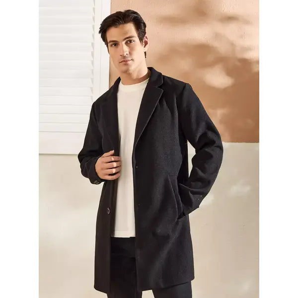 Stay warm and stylish with this felt trench coat. This timeless piece features a solid design, a notched collar, and long sleeves for a classic look. You can dress it up or down, making it a versatile addition to your wardrobe.