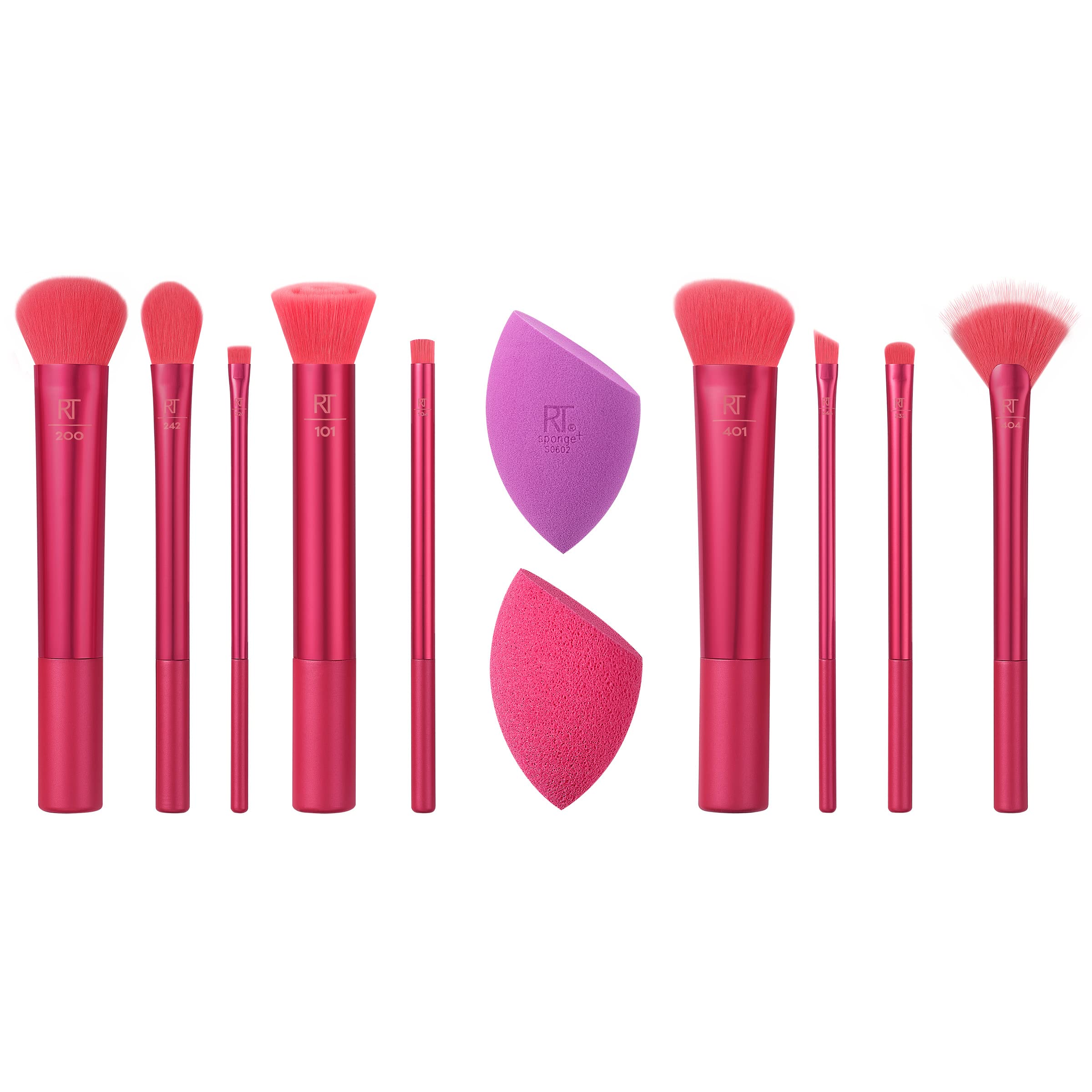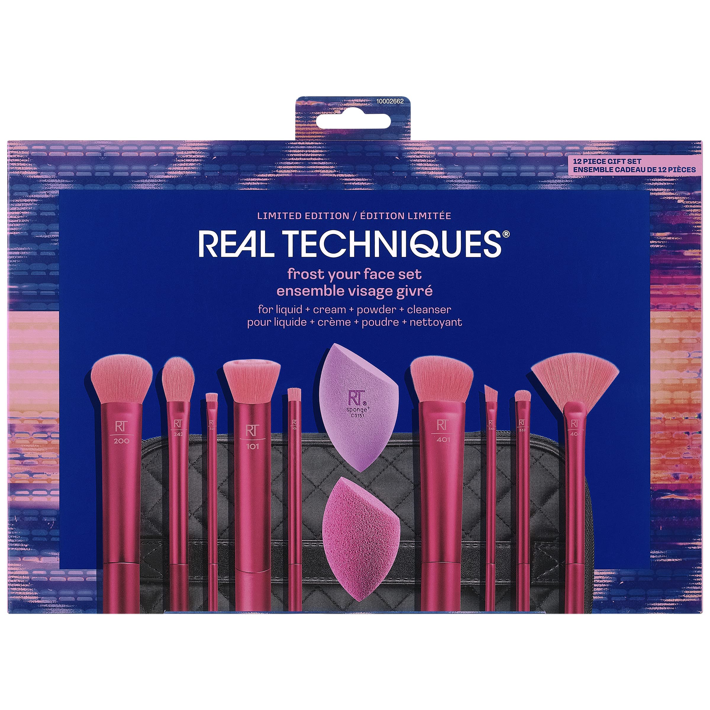 Give the gift of a prepped, blended, sculpted, and highlighted face with the 12-piece Real Techniques limited edition Frost Your Face Set. This set includes brushes, sponges, and a beauty bag! No winter dullness after getting this set – frosted features only. This set includes RT 242 brightening concealer brush, RT 200 expert face brush, RT 404 fan brush, RT 401 sculpting brush, RT 326 flat liner brush, RT 332 smudge brush, RT 344 winged liner brush, RT 101 complexion blender brush, RT 104 lip exfoliating brush, Miracle Complexion Sponge ®, Miracle cleansing Sponge, and a beauty bag. This set can be used with cleansers, liquid, cream, and powder makeup. Designed by makeup artists. Loved by millions. Real Techniques brings quality makeup brushes and tools used by professional makeup artists to the hands of beauty-obsessed customers around the world. Since 2011, we have been creating tools and accessories to help make the most of your favorite makeup. With a beauty community of over 5 million, Real Techniques® strives to inspire, educate, and empower our fans to make the most of their favorite products. Star products like the Miracle Complexion Sponge make blending foundation and concealer effortless while the Everyday Eye Kit – a handpicked selection of brushes - make a runway-ready smokey eye easily achievable. Real Techniques makes the craft of makeup artistry easy for anyone to understand, whether they’re striving for the best no-makeup look or creating the next viral TikTok video.