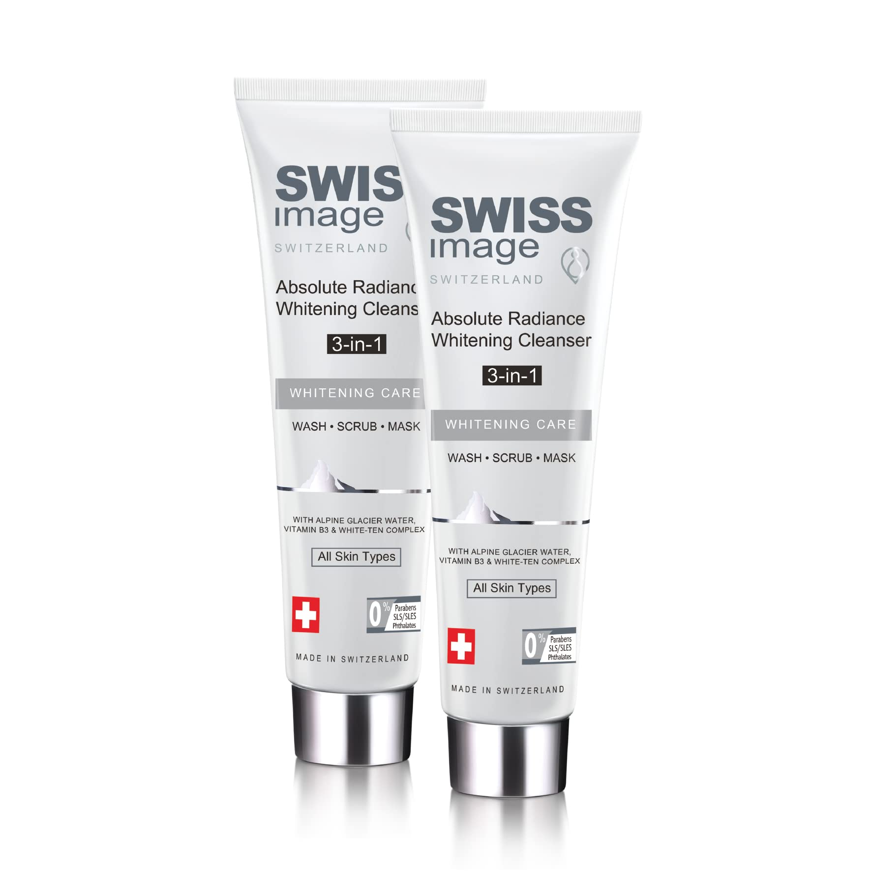 Experience the ultimate glow with this all-in-one cleanser. This Swiss Image Absolute radiance Brightening cleanser is a 3-in-1 cleanser that works as a cleanser, scrub, and mask. It deep cleanses the skin and removes all the dirt and impurities from the skin. This cleanser gently exfoliates the skin and removes all the dead skin cells. It also works as a mask that nourishes and boosts the hydration of the skin. It’s a lightweight and non-greasy formula that doesn't leave any dirt and residue without over-drying the skin. This 3-in-1 cleanser is a gentle yet effective skin-Brightening formula that combines the benefits of Alpine Glacier Water, Vitamin B3, and White-Ten, an innovative natural complex with a synergistic blend of ten botanical skin-Brightening actives. Vitamin B3 helps to improve skin elasticity, reduce the appearance of dark spots, and even out skin tone, by facilitating your natural complexion. Alpine Glacier water helps to replenish moisture, leaving your skin plump, supple, and revitalized. White ten helps to brighten the skin, reduce the appearance of discoloration, and promote a more even complexion. Swiss Image presents a range of innovative and high-quality skin care solutions. All the products are made with melted water from the Swiss Alpine Glaciers along with ingredients from one of the world’s purest environments.