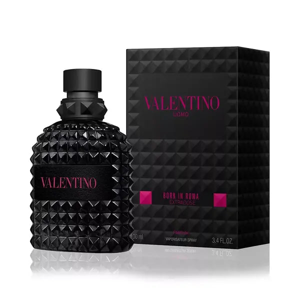 Born In Roma Extradose pushes the boundaries. Experience the highest concentration of Born In Roma and pursue the irresistibility of Born In Roma fragrances. Born from the intensity of a night in the eternal city, this fougère, woody ambery fragrance opens the door of an extravagant world, amplified by an extradose of vetiver, captivating spicy notes and lavandin, for an extra-seduction. Deep dive into a magnetic dream. Dare to be extra-you, dare to be Extra-ordinary. The bottle pays tribute to the iconic Valentino Rockstud. This edgy pyramidal design, inspired by Roman architecture, is a house signature of Maison Valentino.