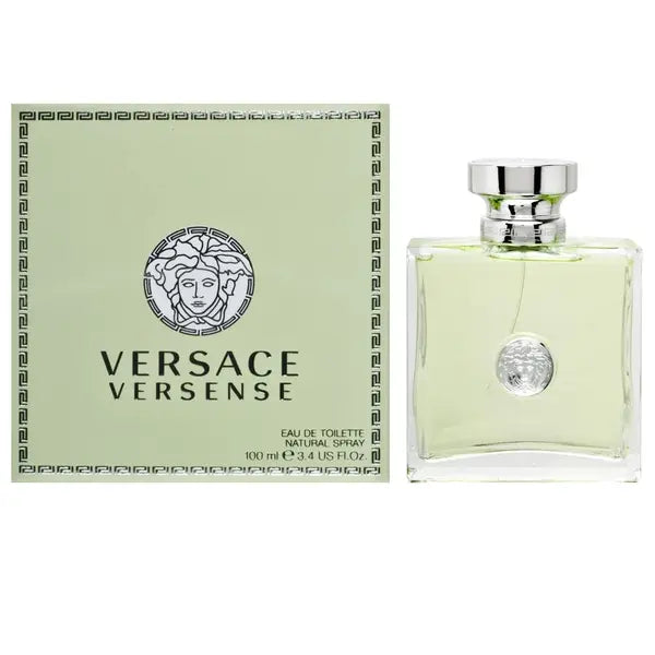 Versace Versense Perfume by Versace, Versace Versense is a unique and exciting perfume for women, released in 2009 . The blend is comprised of natural components that are meant to evoke the Mediterranean with each spray. The fragrance opens with notes of tangy green mandarin, lemony bergamot and the aromatic warmth of fig zest. The perfumeβs middle notes include sea lily, floral jasmine petals and peppery cardamom. Rounding out the scent are the woody and earthy notes of cedar wood, olive wood, sandalwood and musk. Long-standing and beloved haute couture and lifestyle brand Versace is the maker of this scent along with 56 others in its fragrance line, the first of which was launched in 1981. The fragrance itself is pale green, perhaps to bring to mind the verdant essences of nature that have combined to create this special scent. The bottle is clear glass emblazoned with the brandβs legendary seal, and features a silver top.