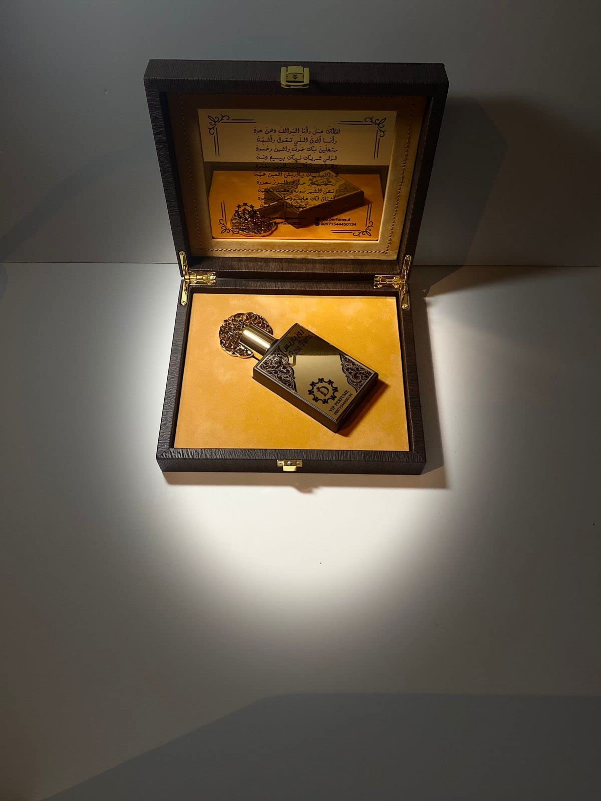 بوكس العطور الرائع من أرقى وأفخم البوكسات وأجود أنواع العطور الثابته والفواحة يحتوي هذا على بوكس جلد باللون البني ويحتوي على قصيدة من أشعار الشيخ محمد بن راشد يصلح هذا البوكس الجميل لهديه رائعه لأغلى الناس لديك ويحتوي على عطر يناسب الجنسين وهو خليط بين الزيوت الفرنسية والعربية لتذهلك بأجمل مزيج مع ثبات وفوحان لمدة طويلة حجم العطر (60)مل صممت لأصحاب الذوق الرفيع والفخم The wonderful perfume box is one of the finest and most luxurious boxes and the finest types of persistent and fragrant perfumes. This contains a brown leather box And it contains a poem from the poems of Sheikh Mohammed bin Rashid.
