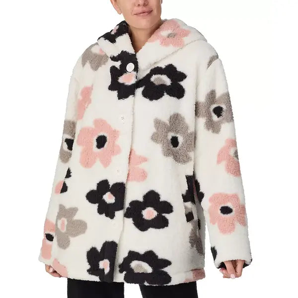 Step into the world of comfort with Sanctuary's cozy sherpa fleece jacket, where contemporary style meets unparalleled comfort. With a flattering hood and side pockets, this jacket is a timeless essential for those who seek comfort and style.