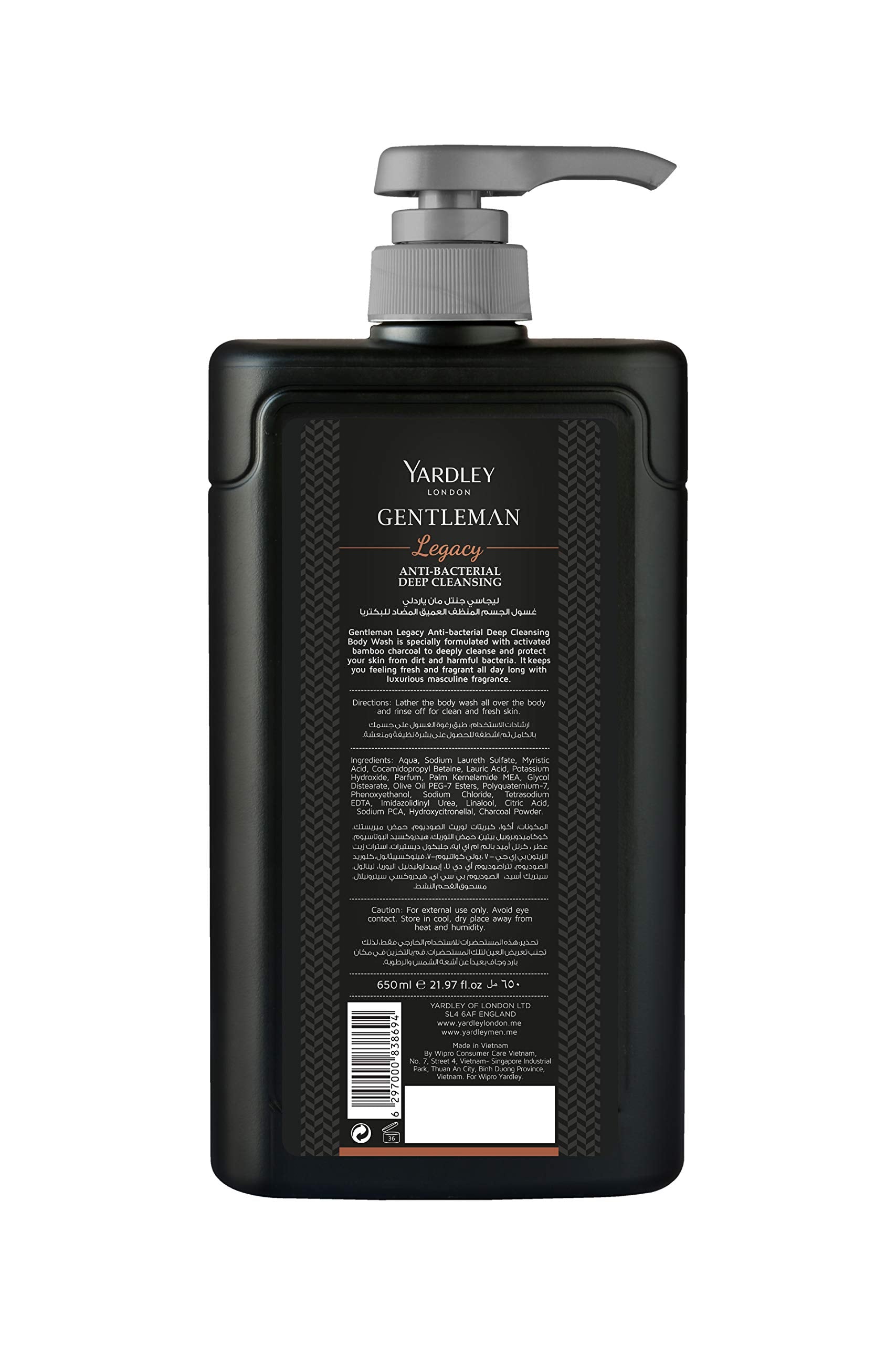 Yardley gentleman antibacterial deep cleansing body wash has actively charcoal ingredient which is suitable for men's skin and protects skin from harmful bacteria. The fragrances used are also long lasting and very masculine in nature.