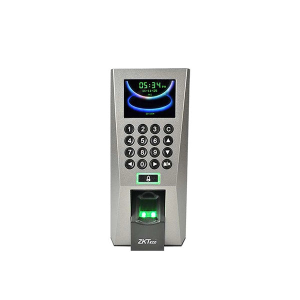 Keeping track of attendance at the office, knowing when your employees come in and leave, and making sure only authorized individuals to enter, is extremely important to the security and time management of your organization. With this advanced ZkTeco Access control - F18 Time Attendance Machine, available at shopkees at best price, you can easily monitor employees coming in and leaving the premises and also keep a tab on the authorization of the individuals. The F18 features the fastest commercial-based fingerprint matching algorithm and high-performance, high-image quality optical fingerprint sensor. The device offers the flexibility to be installed standalone or with any third party panel that supports 26-bit Wiegand. All the operation can be done on the TFT-LCD.Β